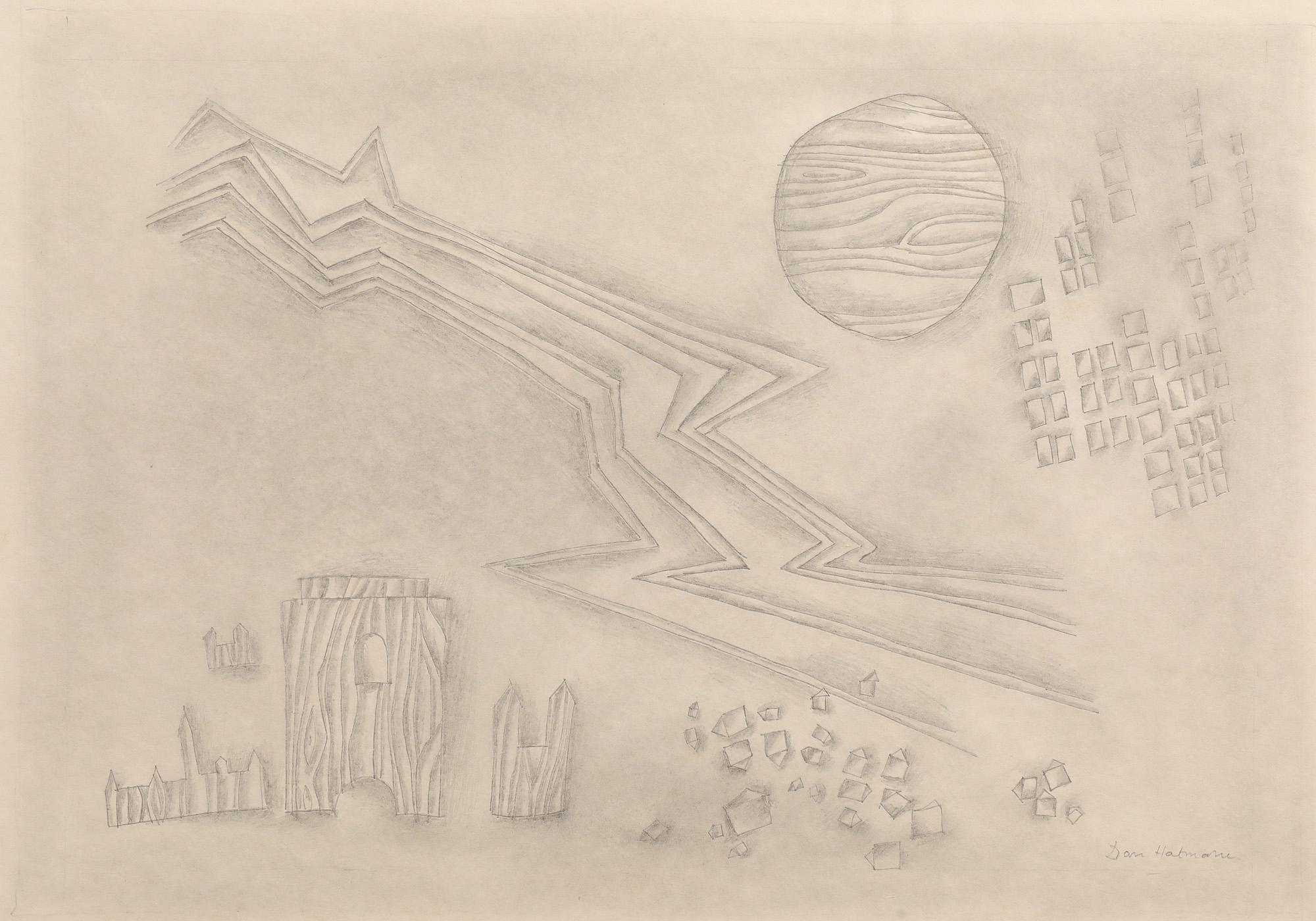 semnat dreapta jos, în creion, "Dan Hatmanu"; semnat, datat și dedicat pe verso, ”Dl-ui Braun cu multă dragoste și prețuire, Dan Hatmanu, 14 iulie 1977”