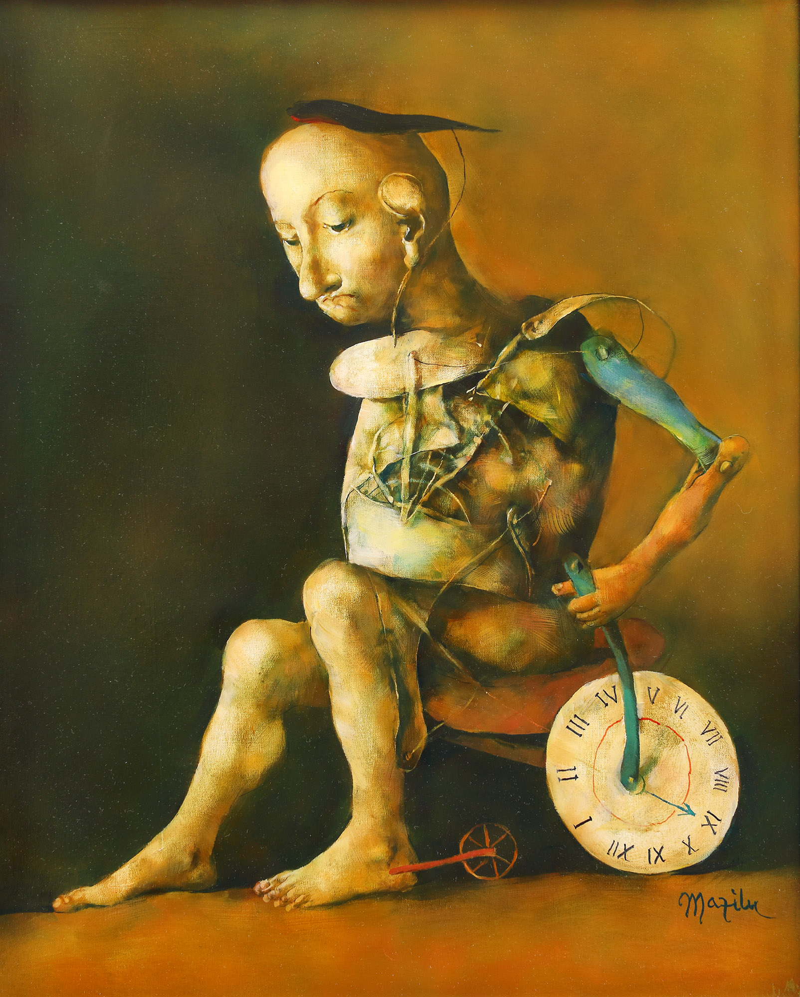 Cu o activitate artistică manifestată cu precădere în Franța, unde se va stabili în anul 1982, Georges Mazilu se evidențiază printr-o pictură dominată de contraste. Realizând o fuziune între renascentismul nordic, abordat în noi dimensiuni și suprarealism, artistul dă naștere unei picturi abstracte, construită gradual în imagini reprezentative, proces ce îi permite să transforme abstractul într-o anume stare armonioasă, unde predomină ambianțele complementare și clarobscurul. (G.M.)