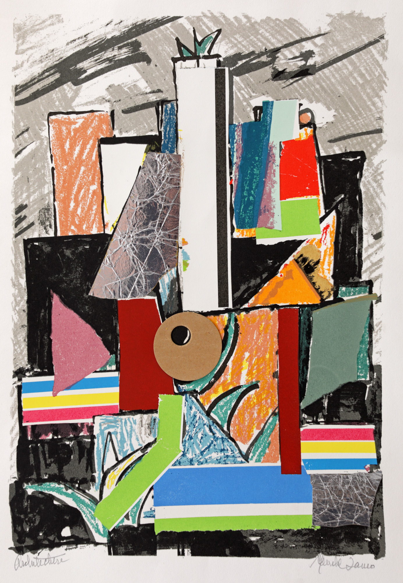 semnat dreapta jos, în creion, "Marcel Janco"; intitulat stânga jos, în creion, "Architecture"