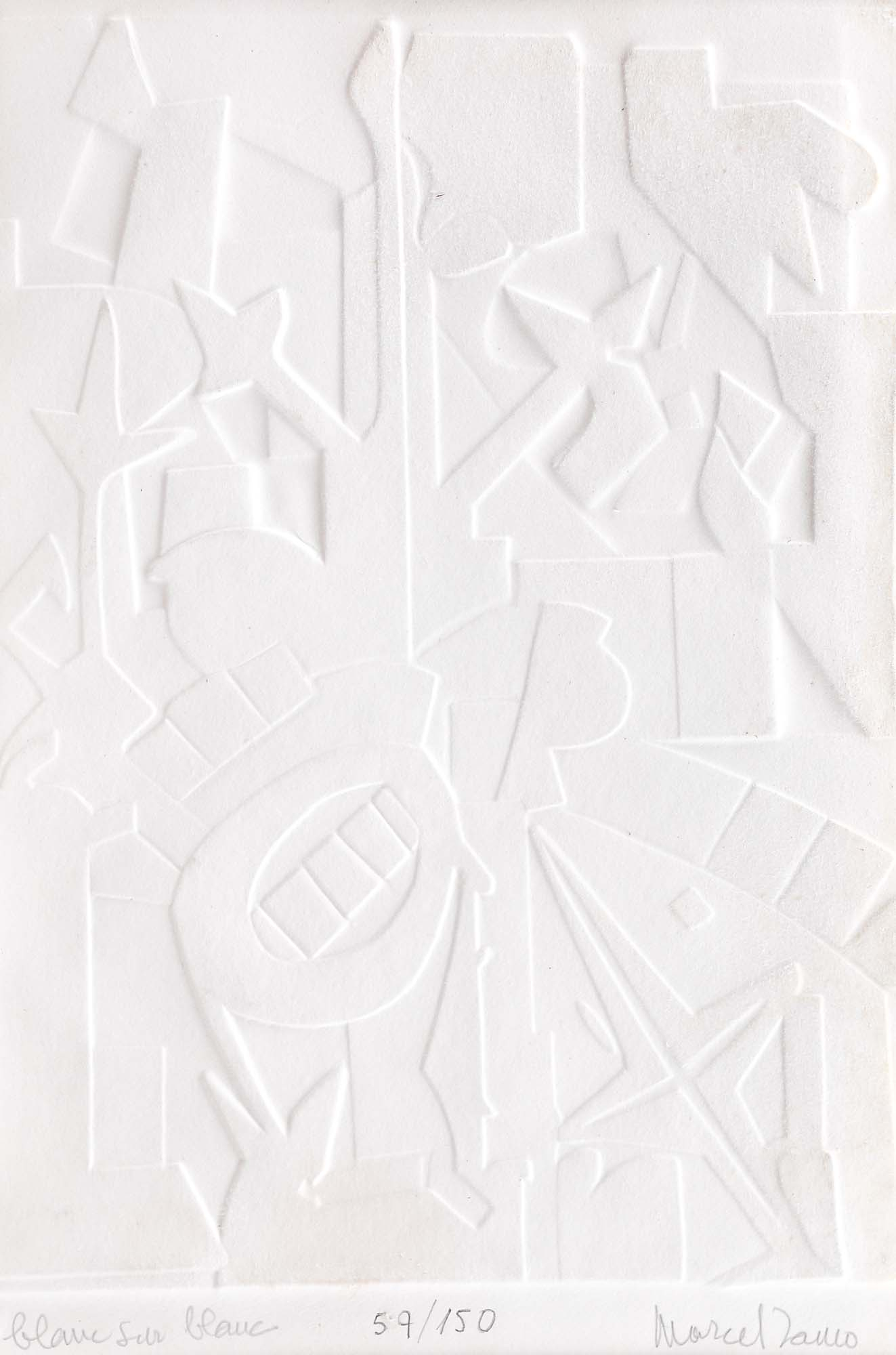 semnat, numerotat și intitulat central jos, în creion, "Marcel Janco, 26/150, Blanc sur Blanc"