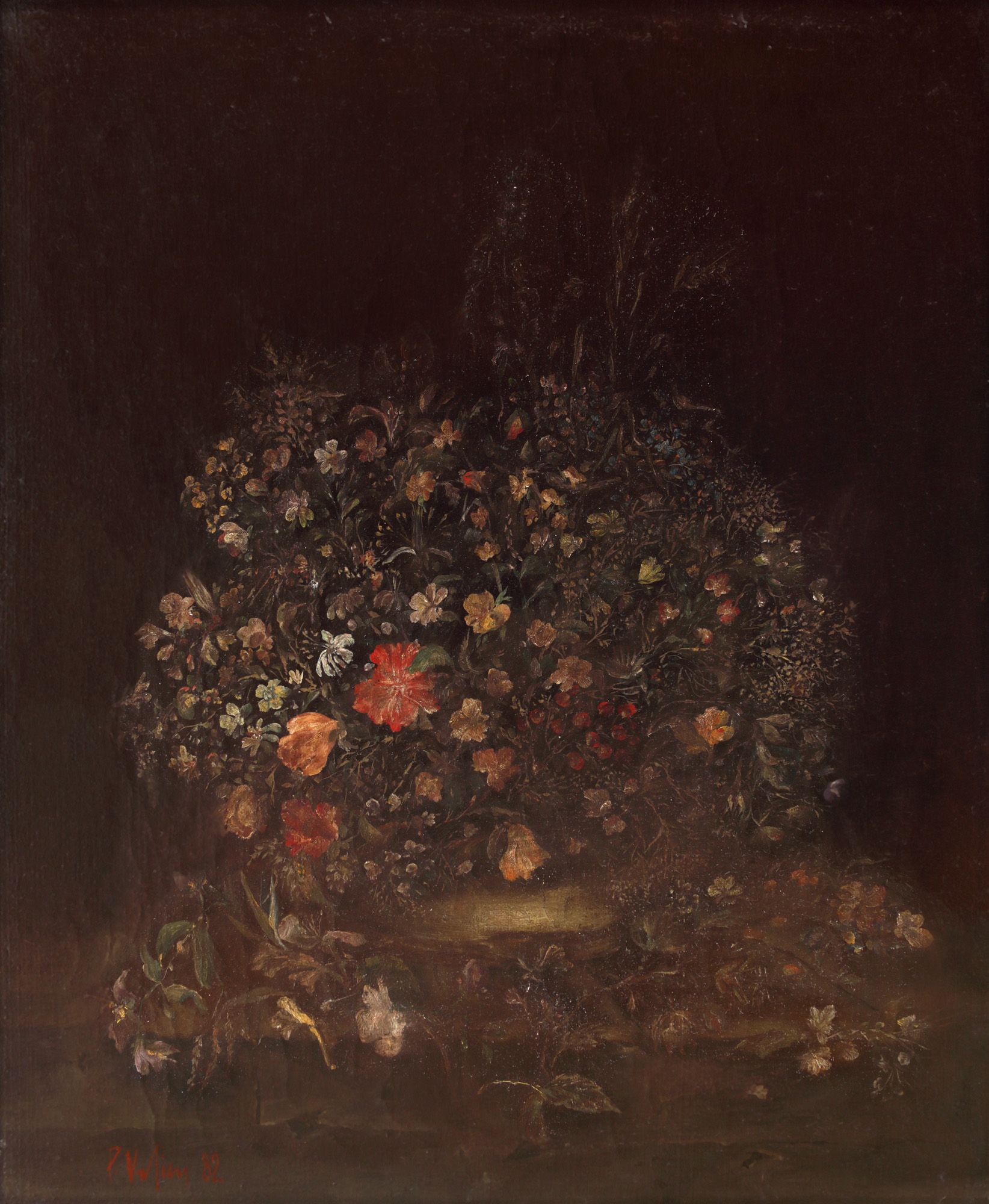 semnat și datat stânga jos, cu roșu, "P. Velicu, (19)82"