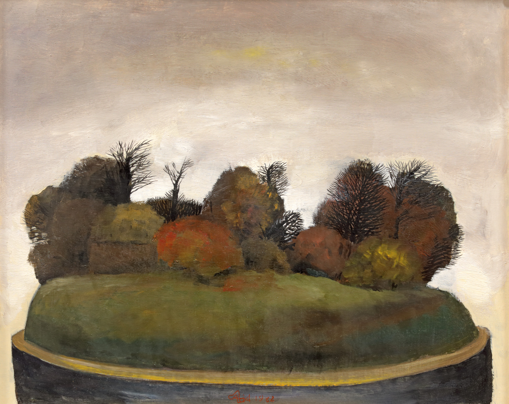 semnat și datat central jos, cu roșu, "Câlția, (19)82"
