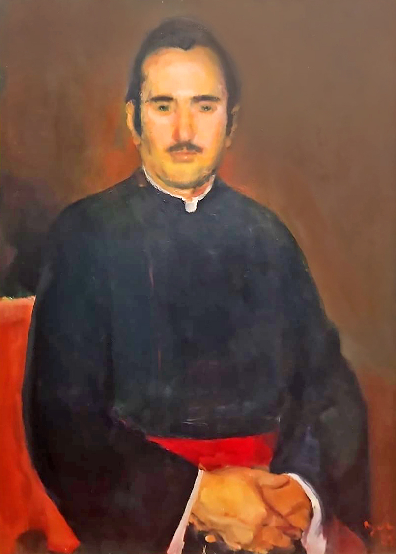 Jurnalele lui Corneliu Baba păstrează înăuntrul lor însemnate relatări pe care pictorul obișnuia să le noteze periodic. În ziua a treia a lunii noiembrie, anul 1985, regăsim inscripționate următoarele: ”[...] Azi am terminat portetul preotului Ioan Pop din Cluj, început mai de mult. [...] toate aspectele de portretistică sunt posibile depinzând numai de ochiul care le regizează, intuiția și instinctul care conduc mâna pictorului spre ceea ce este uman, expresiv, dramatic și bineînțeles nelipsite de doza obligatorie de mister. Portretul zice-se este un lucru reușit. [...].” Născut la 28 noiembrie 1938 în județul Cluj, Ioan Pop va absolvi cursurile Seminarului Teologic Ortodox din Cluj și pe cele ale Institutului Teologic de Grad Universitar din Sibiu. Va fi hirotonit în anul 1963 și va debuta în activitatea pastorală în același an, deservind mai multe parohii de-a lungul activității sale. În perioada în care Corneliu Baba a realizat acest portret, preotul Ioan Pop deservea parohia ”Sf. Nicolae” din Cluj. Corneliu Baba deprinde ”alfabetul și gramatica elementară a desenului și picturii”, după cum el însuși afirmă, încă din fragedă copilărie. Atelierul tatălui său, pictorul Gheorghe Baba, îi va servi drept prim lăcaș de exprimare a imaginarului său creator. Vocația pentru portret și vastele schițe pe care artistul le dedică motivului ne relevă, prin măiestria luminii și a texturilor, emfaza asupra stărilor interioare pe care o regăsim, de altfel, în operele lui Rembrandt. Rădăcinile manifestărilor în genul portretisticii ni se dezvăluie încă de timpuriu: la liceu, Corneliu Baba era cunoscut drept ”portretistul orașului”: majoritatea personalităților notabile ale Caransebeșului pozau pentru el. Realizează, treptat, autoportrete, portrete ale apropiaților sau ale unor nume reputate precum: Tonitza, Enescu, Sadoveanu și Arghezi, sau se oprește asupra unor subiecte particulare: regele nebun, țăranii sau arlechinul. Realismul specific temperamentului artistului se va extinde și în opera sa, iar predilecția pentru figura umană va dobândi o dinamică imprevizibilă și spectaculoasă îndeosebi în portrete.