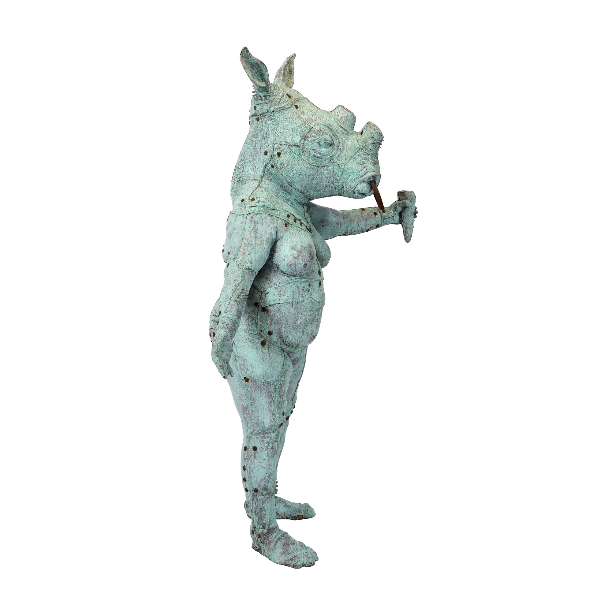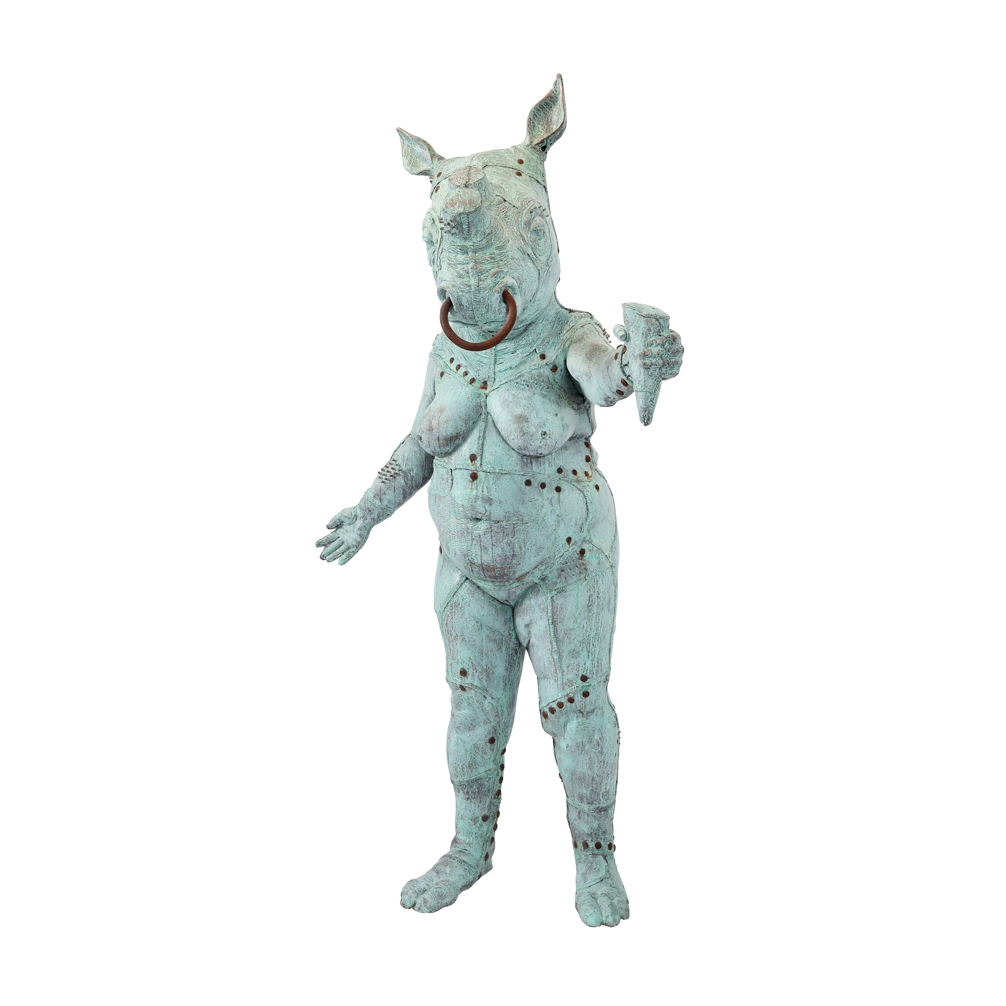 Această lucrare este dedicată ultimului rinocer alb care a fost ucis exact în ziua în care un robot a fost declarat cetățean. Un fapt elocvent pentru ascensiunea tehnicii în dauna naturii amenințată cu distrugerea. Este în același timp un avertisment pentru ceea ce înseamnă joaca omului de-a Dumnezeu, capabilă să creeze monștri, să distrugă spiritualitatea prin tehnologie. Într-un fel pe care doar arta îl poate realiza, această lucrare arată pe de o parte, la ce poate duce jocul periculos de-a Creatorul, pe de altă parte, întruchipează caracterul nobil al naturii prin gestul ființei care își oferă cornul tăiat, cel pentru care braconierii au exterminat specia. (Radu Panait)