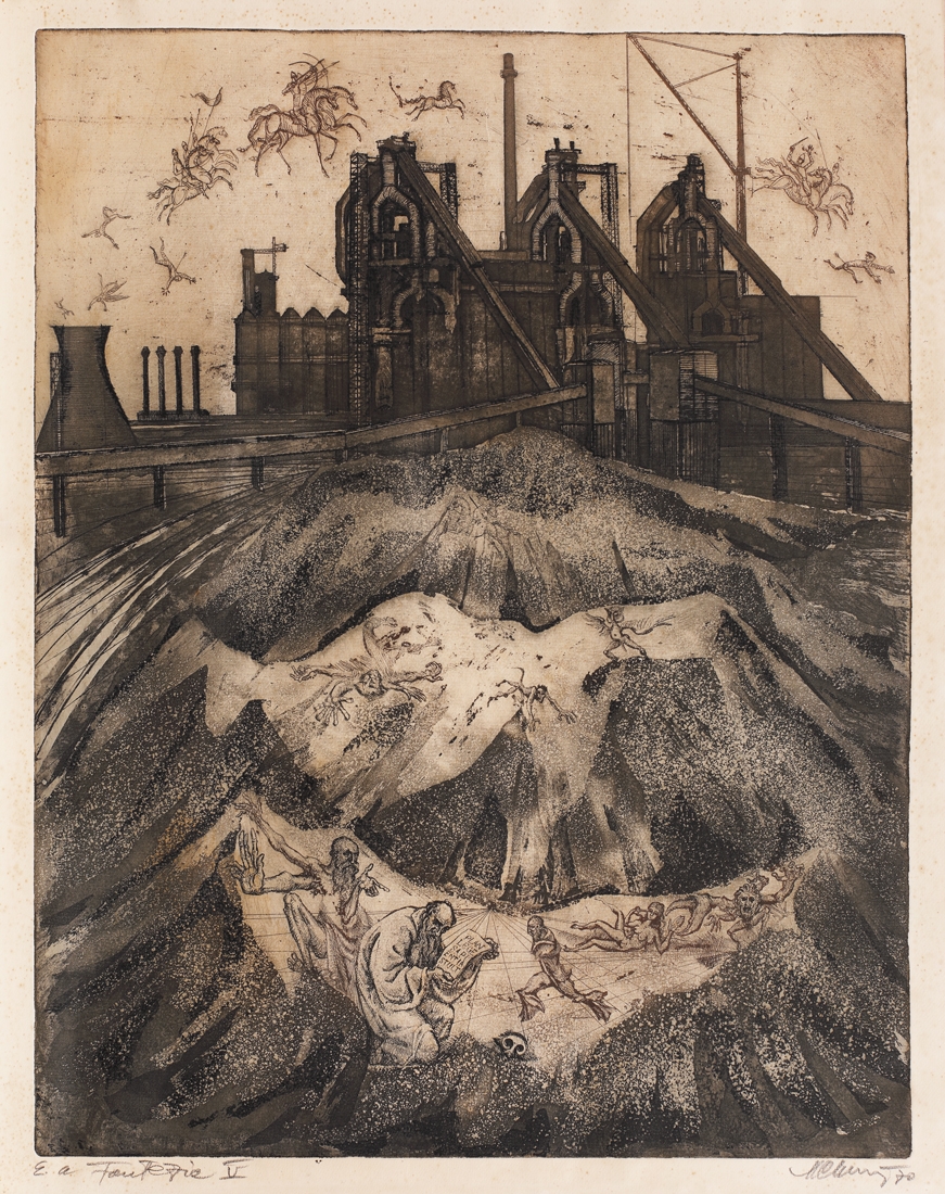 semnat și datat dreapta jos, în creion, ""M. Chirnoagă, (19)70"; notat și intitulat stânga jos, în creion, "e.a., Fantezia V"