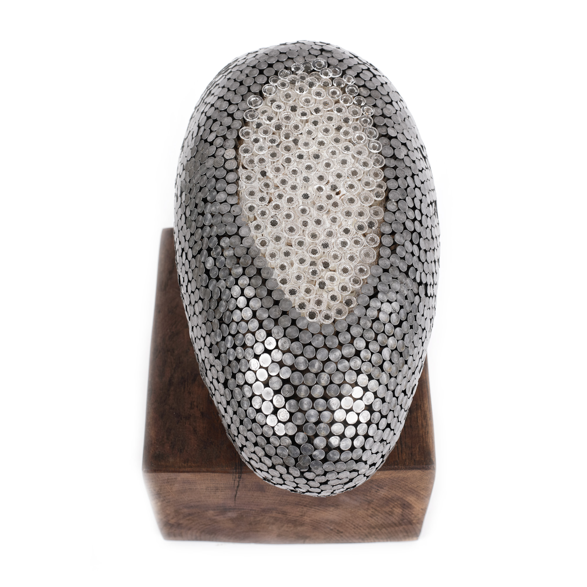 Într-un interviu, artistul Mihai Țopescu declara: “Arta nu oferă răspunsuri, arta pune întrebări”. În seria sculpturală Cocoons, artistul aduce în dezbatere tema sacrificiului. Amintind de inocența unui portret de copil, sculptura duce cu gândul la sacrificiile antice din religiile semitice. Cu o fizionomie redusă la minim, portretul nostru se distinge prin utilizarea a două materiale aparent aflate în opoziție: metalul - duritate, rigiditate, și sticla - fragilitate, delicatețe. Cu cât epicentrul de sticlă este înconjurat mai mult de cuie din metal, cu atât sacrificiul a fost mai dramatic.