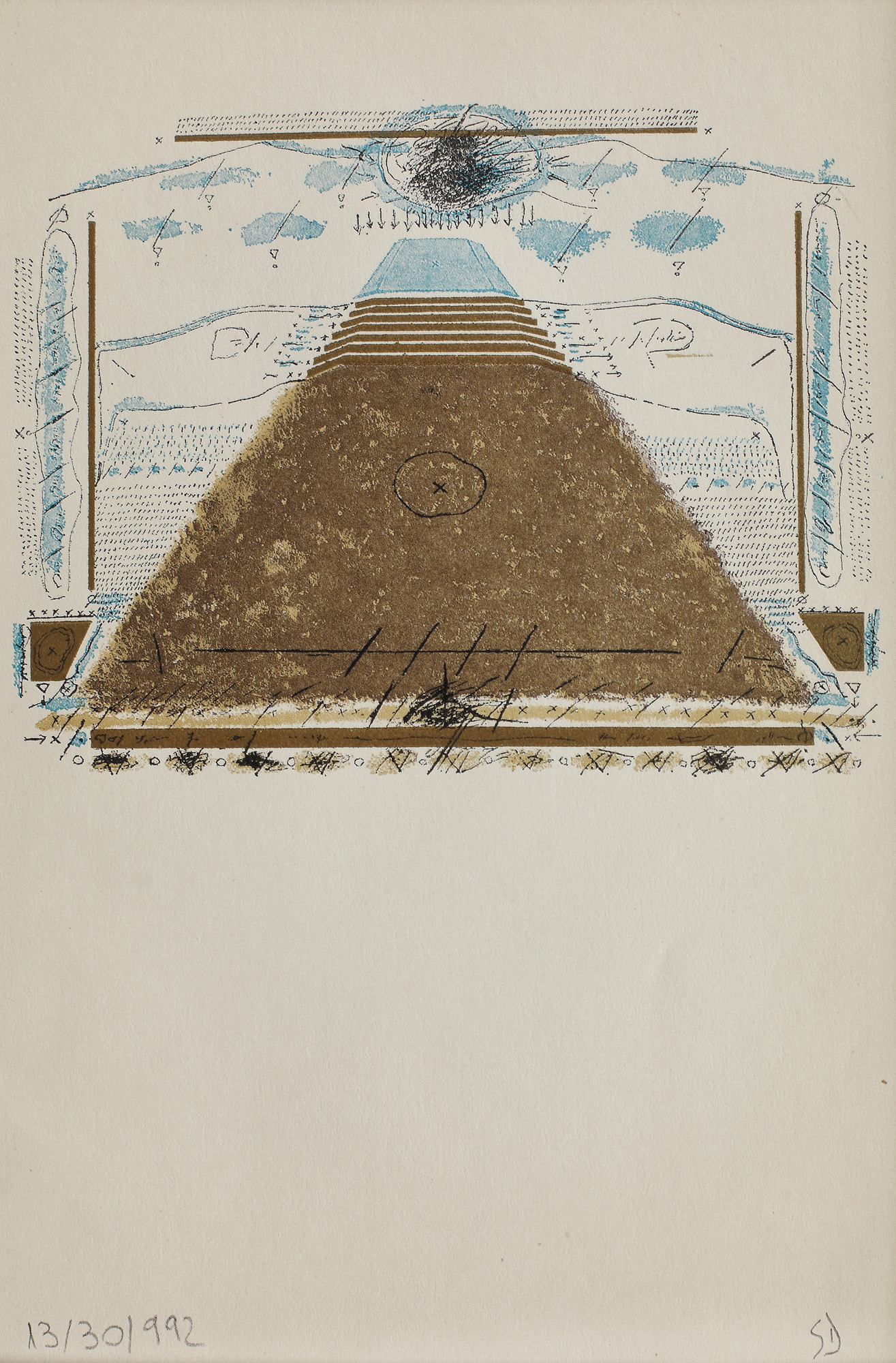 semnat dreapta jos, în creion, "SD"; numerotat și datat stânga jos, în creion, "13/30, 1992"