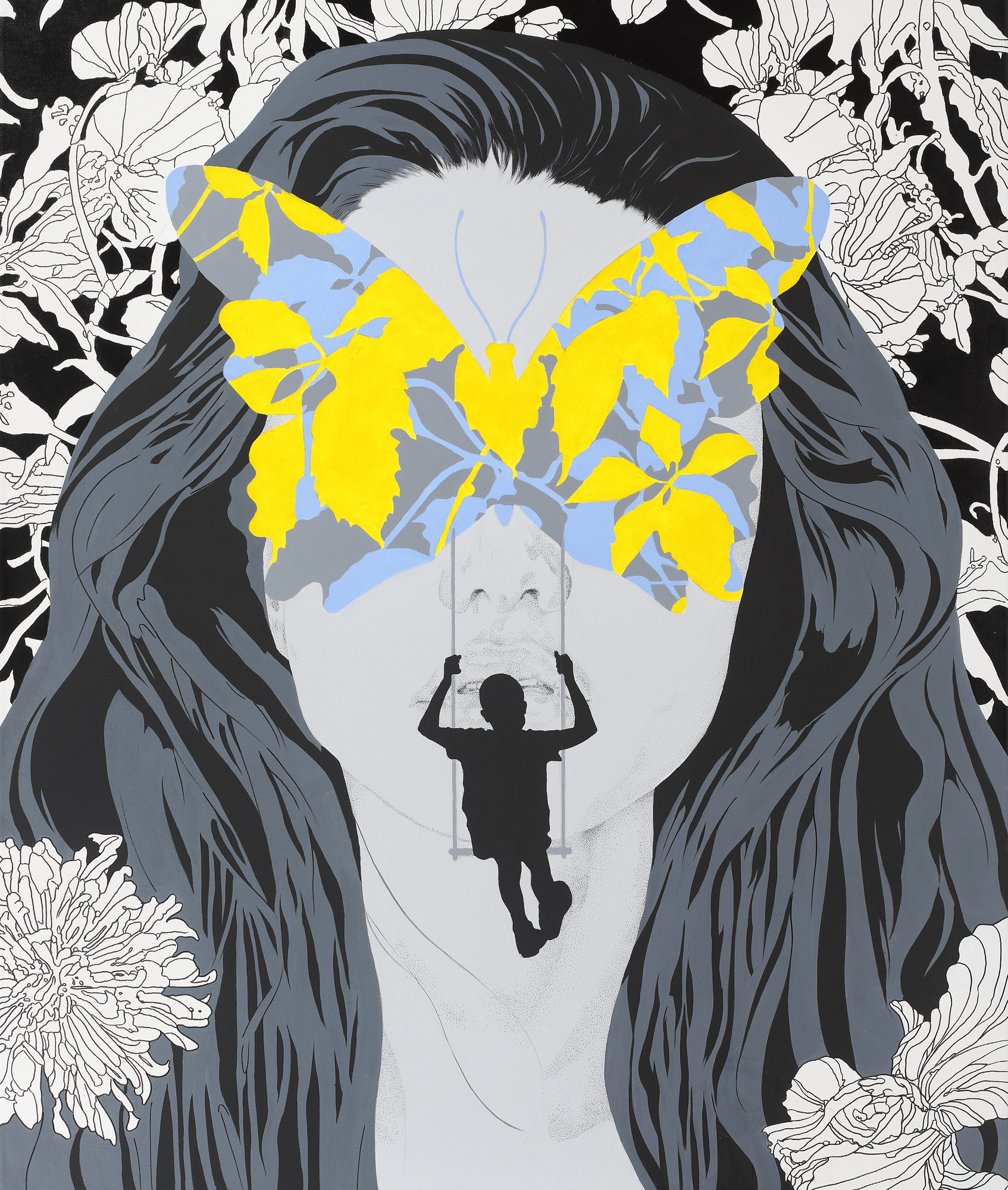 Permanentul balans al evenimentelor din viața, visul, dorința, amintirea reprimată sunt suprinse în lucrarea Swing. Imaginea leaganului suspendat într-o reverie, mișcarea acestuia însuflețită de respirație, conștientizarea nevoii de echilibru ludic într-o lume tulburată de obsesii constituie tema lucrării. Compoziția structurată în trei planuri, începând cu fundalul floral monocrom care se continuă în prim plan cu cele doua elemente florale, si sfârșind cu fluturele și leaganul copilului, este tratată în manieră plată, decorativa, inspirată de cadrele statice fotografice.