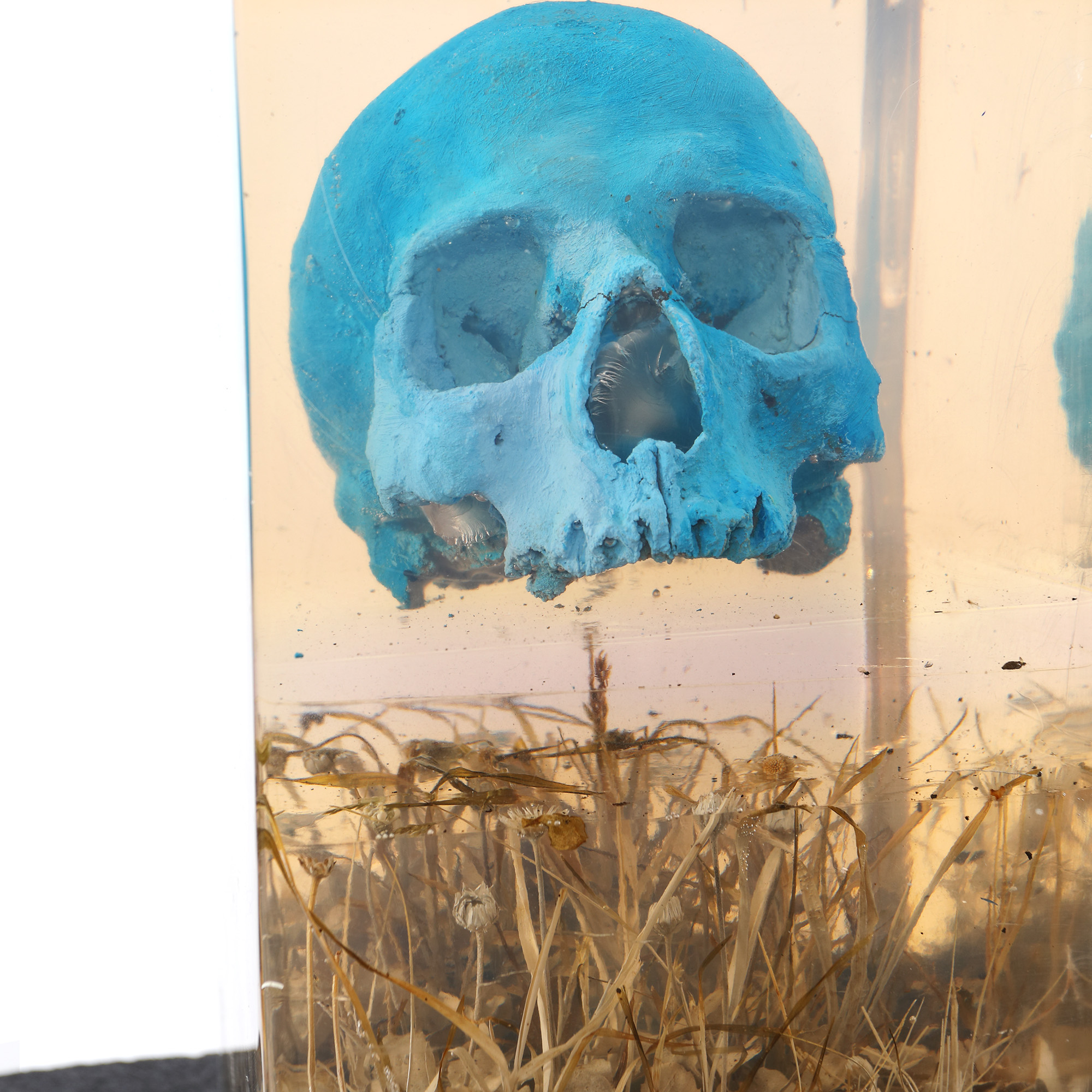 Fuziune între pictură și sculptură, ca niște imagini bi-dimensionale privite tri-dimensional, seria cuburilor reprezintă o reinterpretare a iconografiei bizantine. "Dacă bobul de grâu nu cade în pământ şi nu moare, rămâne singur. Dar dacă moare, aduce rod bogat. Se seamănă în putreziciune şi reînvie în neputreziciune. Se seamănă în slăbiciune şi reînvie în putere” (Calea Crucii, secțiunea a XIV-a) Craniul este reprezentarea lui Adam aflat în umbra răstignirii lui Hristos, ca legătură între cer și pământ, înviat prin sacrificiul cristic, reprezentat prin culoare. Culoarea albastră, înlocuind purpuriul sângelui, apare în iconografie ca reprezentare a boltei cerești, ca spațiu final al credinței.