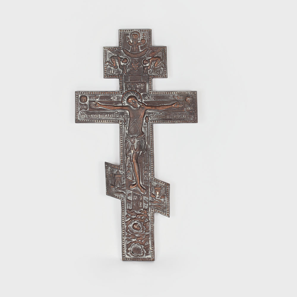 72. Crucifix sub forma unei cruci de Lorena, decorat cu scena Răstignirii, sfârșitul sec. XIX