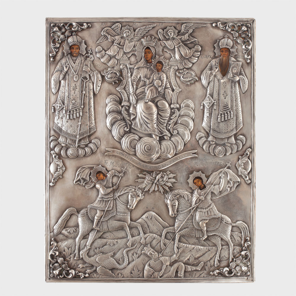 Icoana este destinată cultului domestic şi face parte dintr-un larg şir de opţiuni iconografice, în care doar Maica Domnului cu Pruncul se reiau, aproape neschimbat, intercesorii sunt mereu alţii, iar compoziţia poate varia în dependenţă de comanditar sau de preferinţele clerului. Acestea puteau varia de la o epocă la alta.