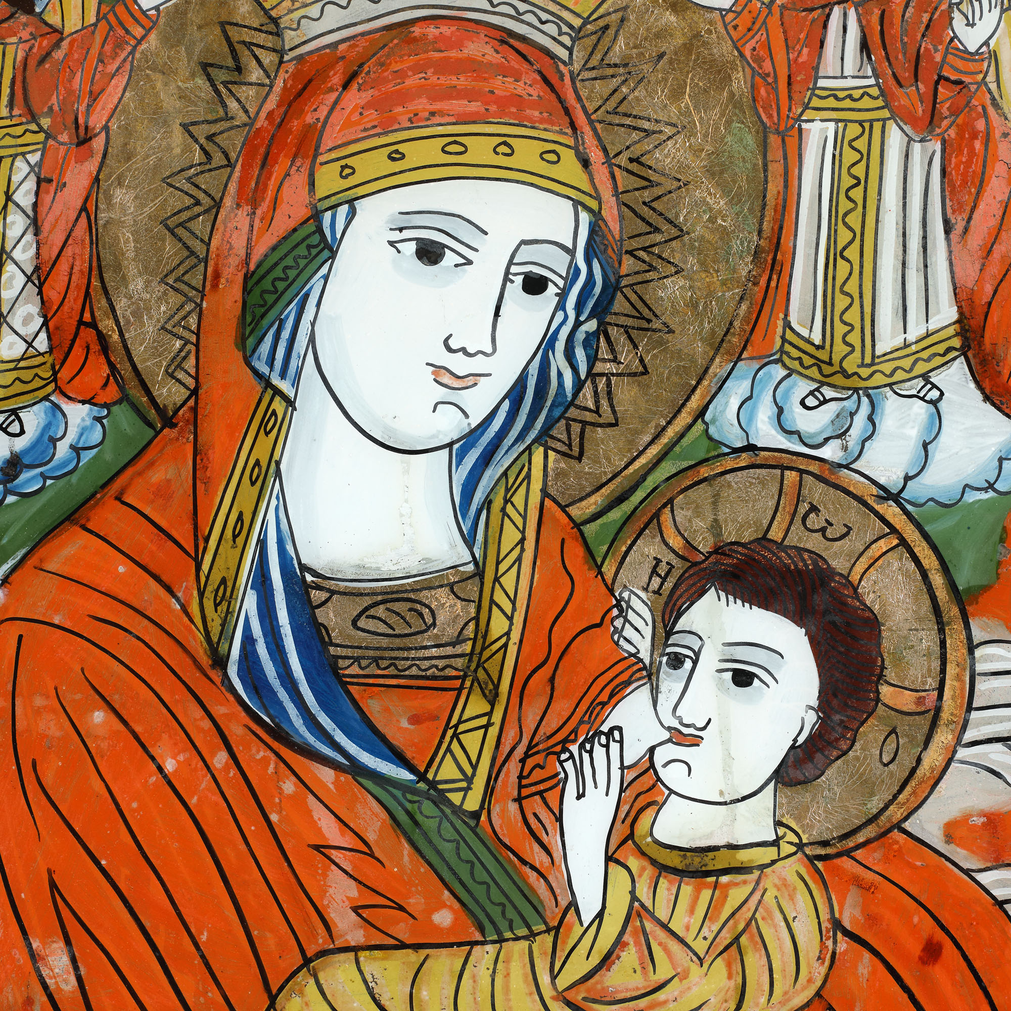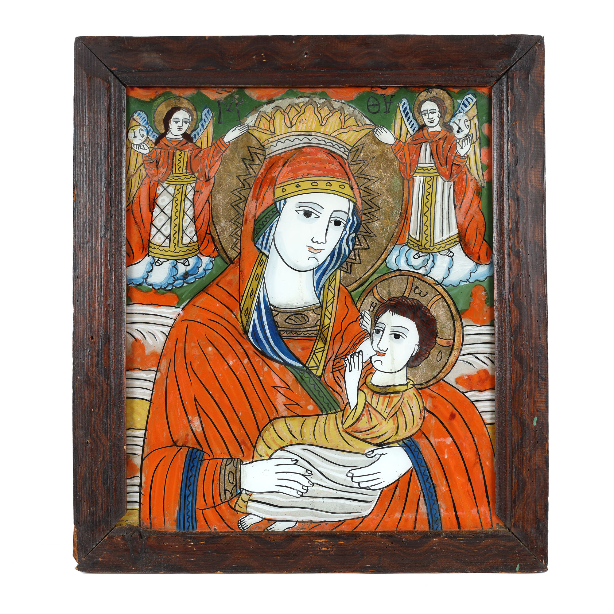 61. Icoană pe glajă, "Maica Domnului - Cea care alăptează”, atelier din Șcheii Brașovului, a doua jumătate a sec. XIX