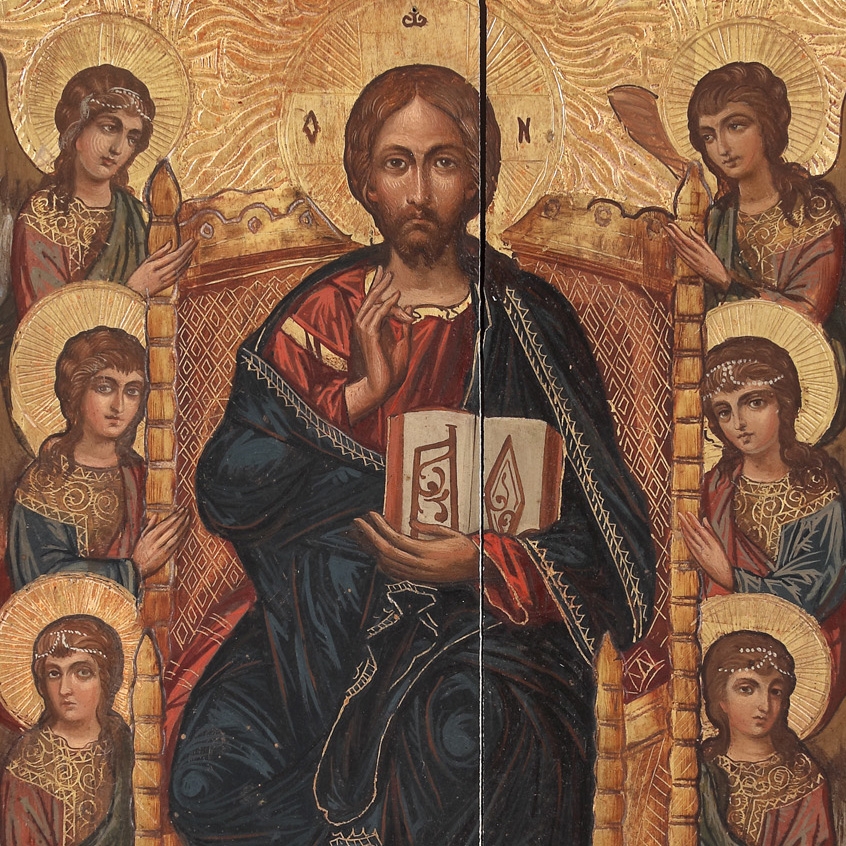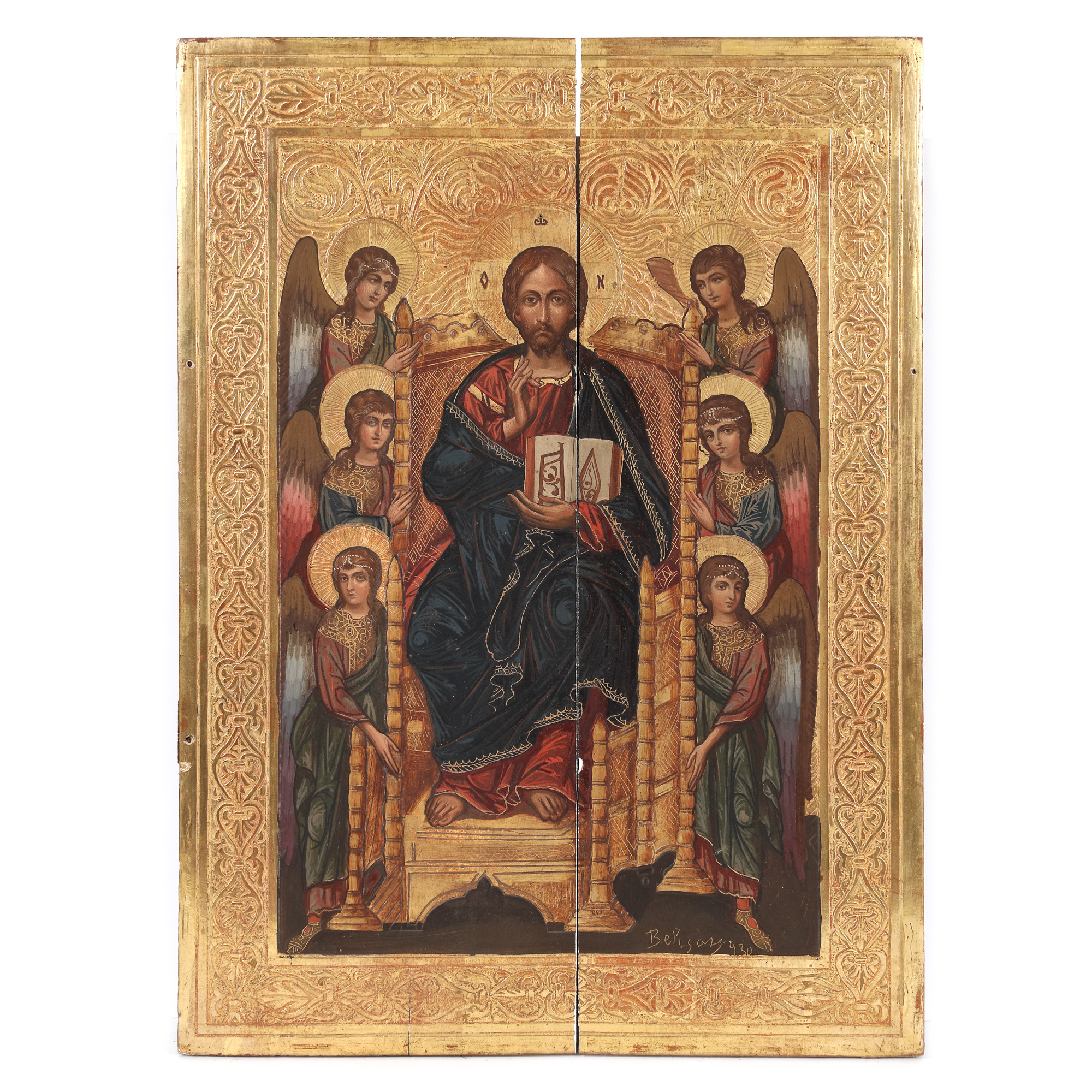56. Icoană pe lemn, ”Iisus Hristos Împărat și Mare Arhiereu”, zugrav Belizarie, 1930