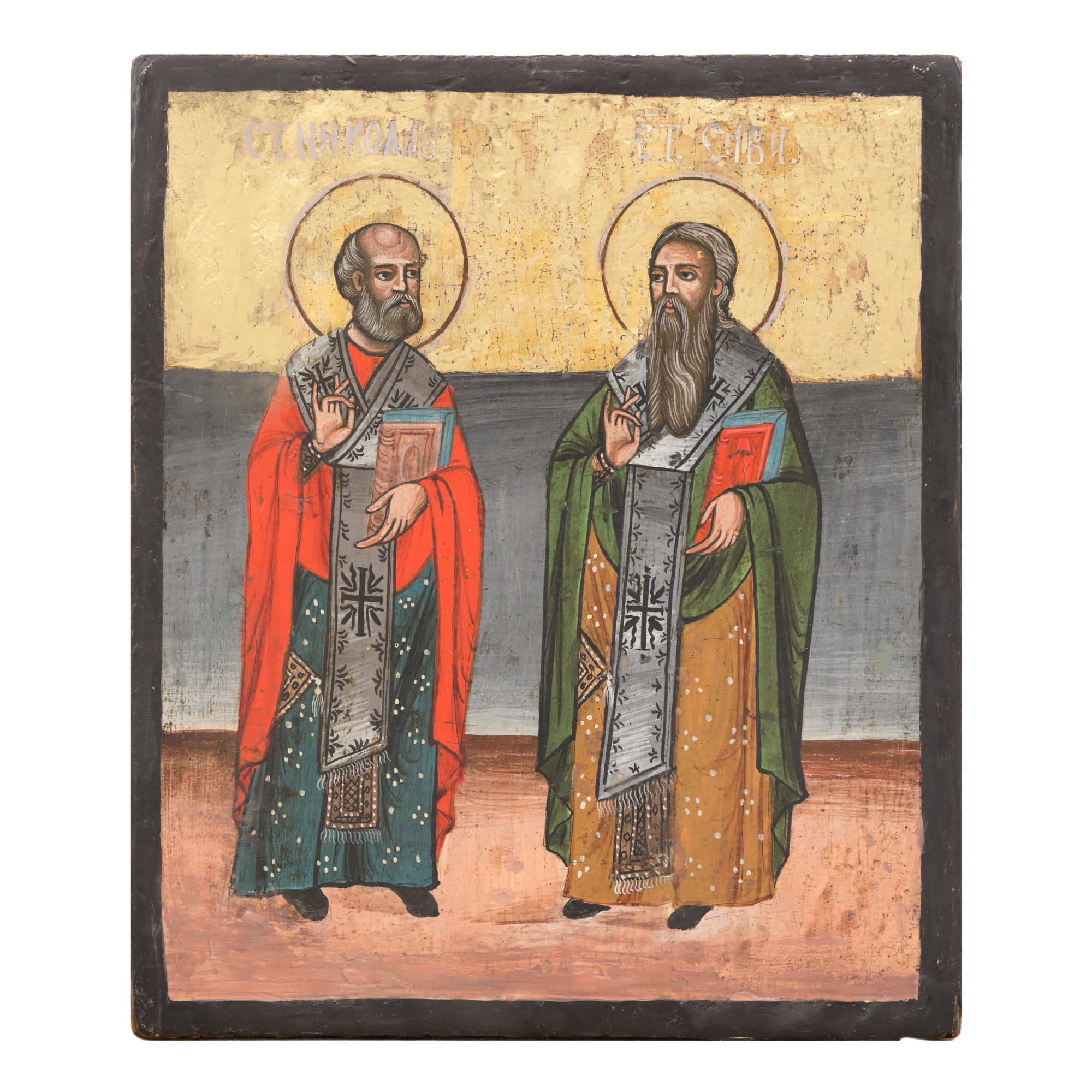 63. Icoană dublă prăznicar, ”Intrarea în Biserica a Maicii Domnului” și ”Sfinții Ierarhi Nicolae și Sava”, școală post-brâncovenească, sfârșitul sec. XVIII-începutul sec. XIX