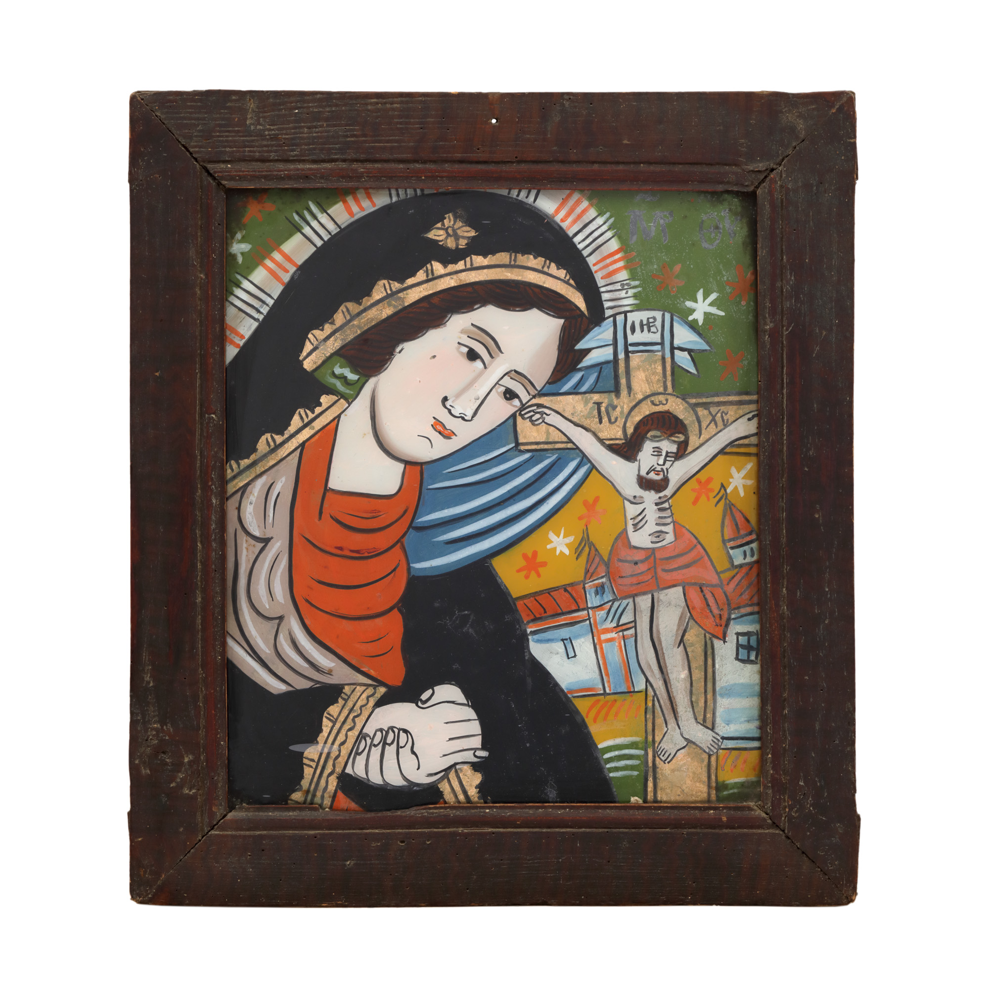 40. Icoană pe glajă, ”Maica Domnului Îndurerată", atelier din Șcheii Brașovului, a doua jumătate a sec. XIX