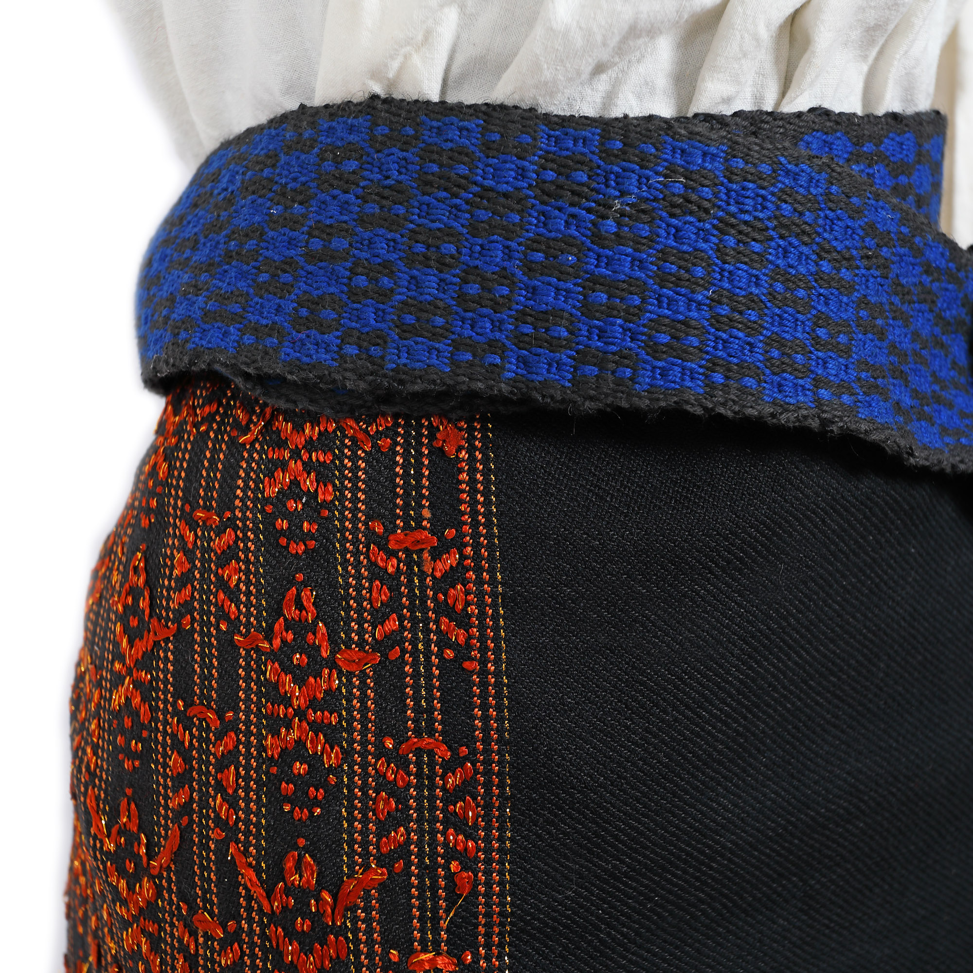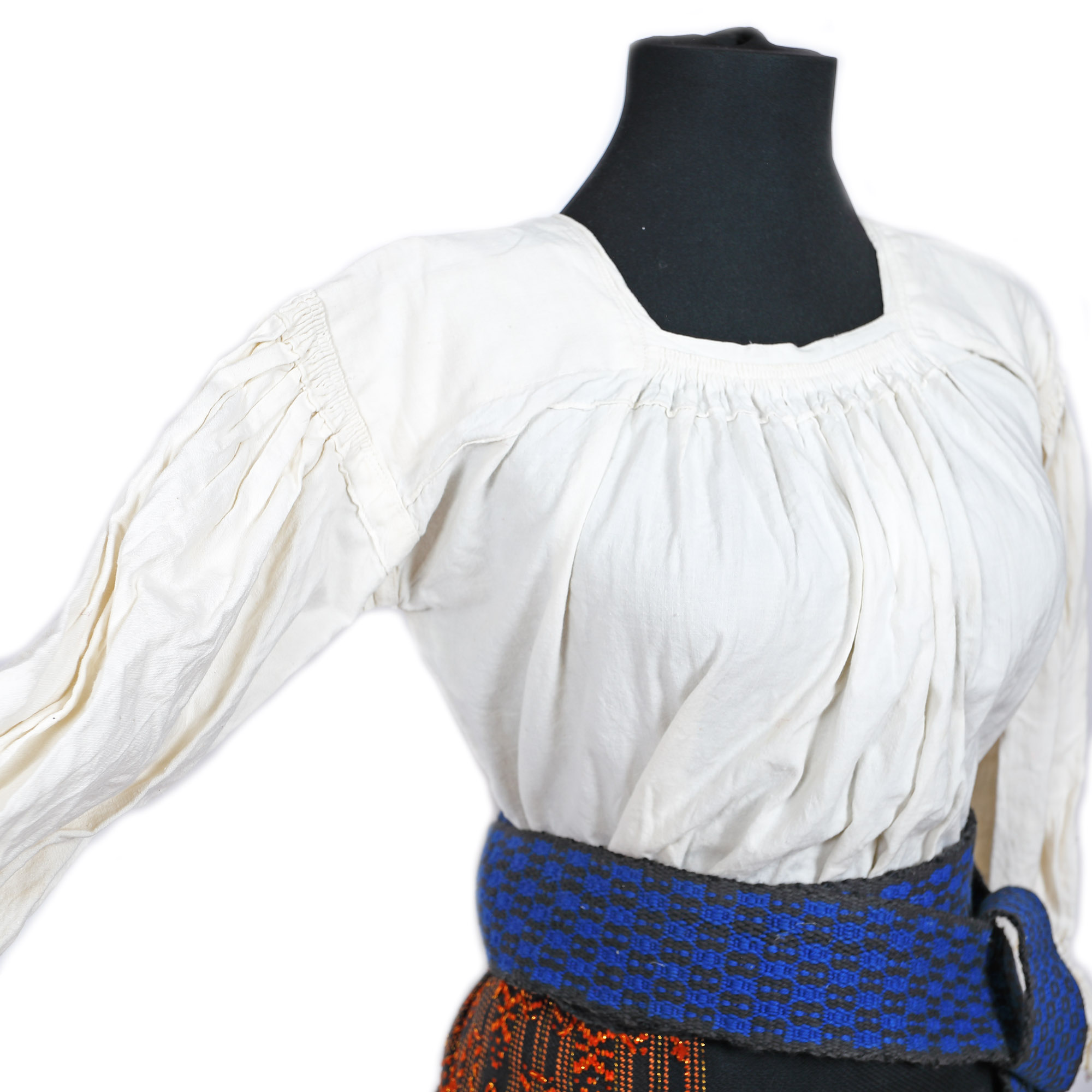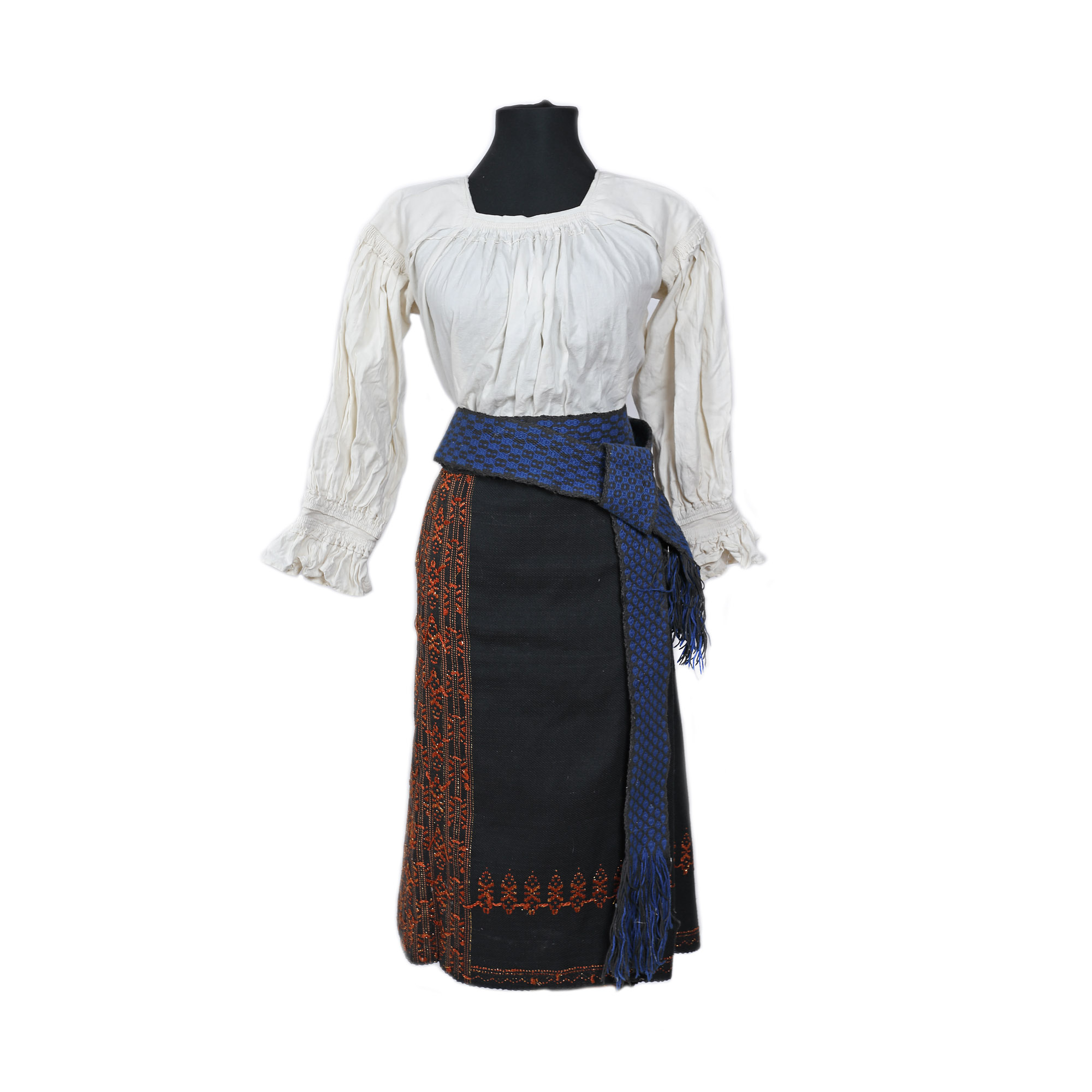 161. Costum popular alcătuit din ie de Maramureș, fotă și brâu reprezentative pentru zona Argeș, prima jumătate a sec. XX