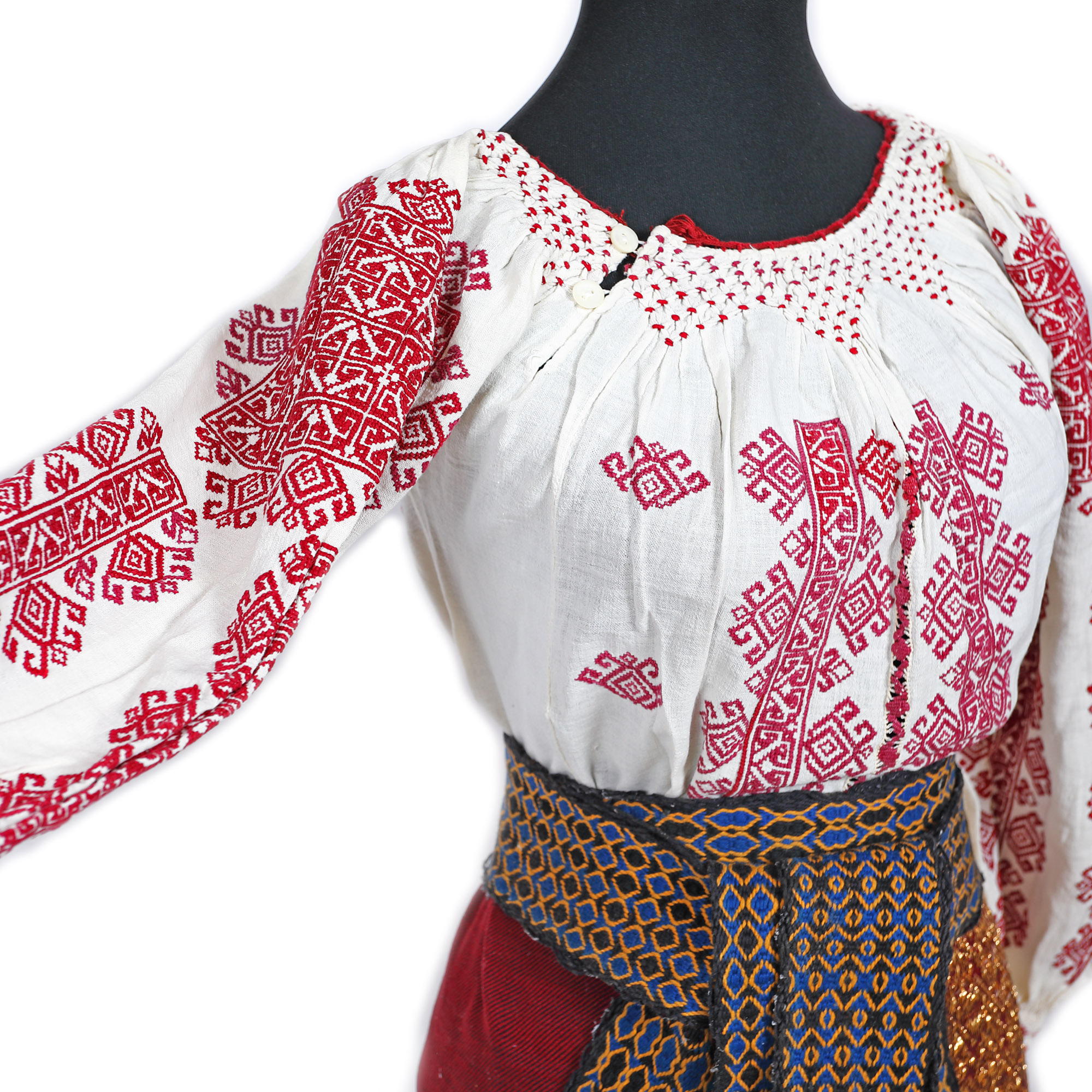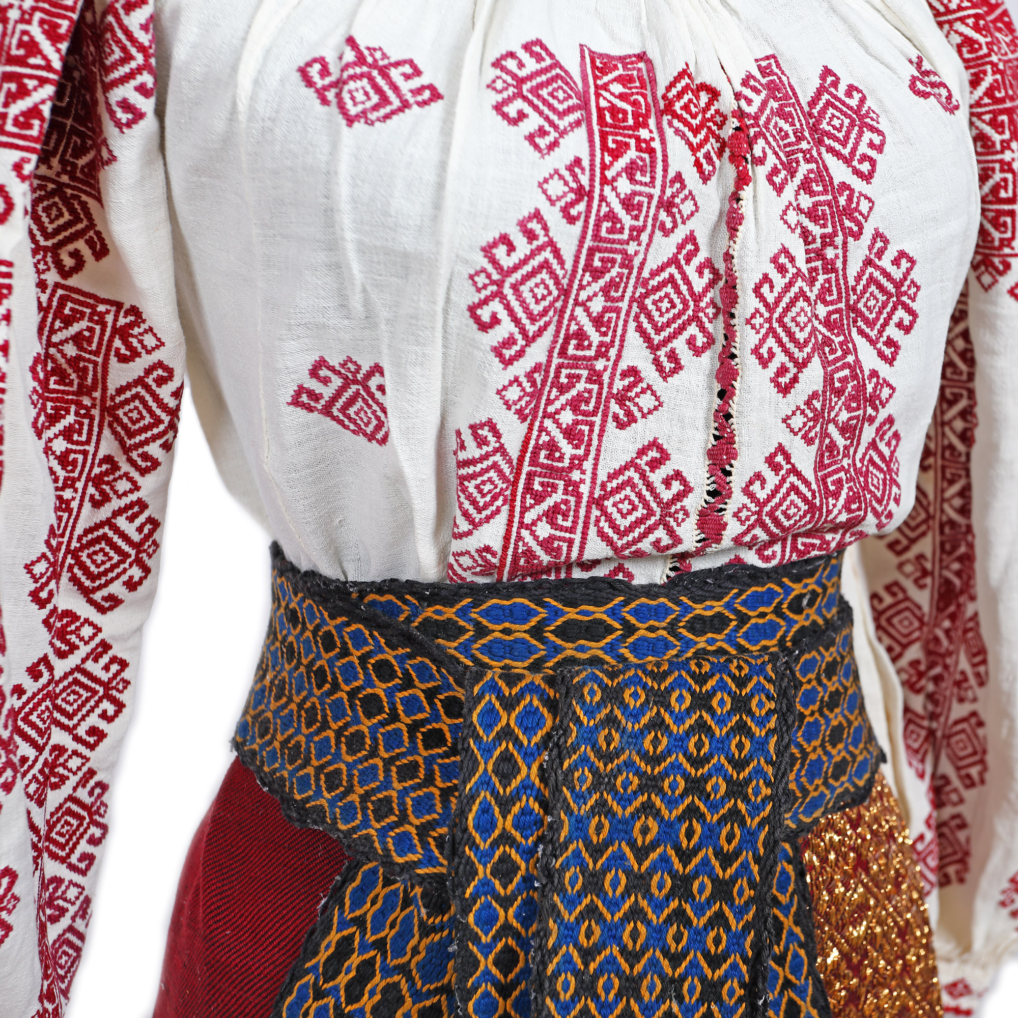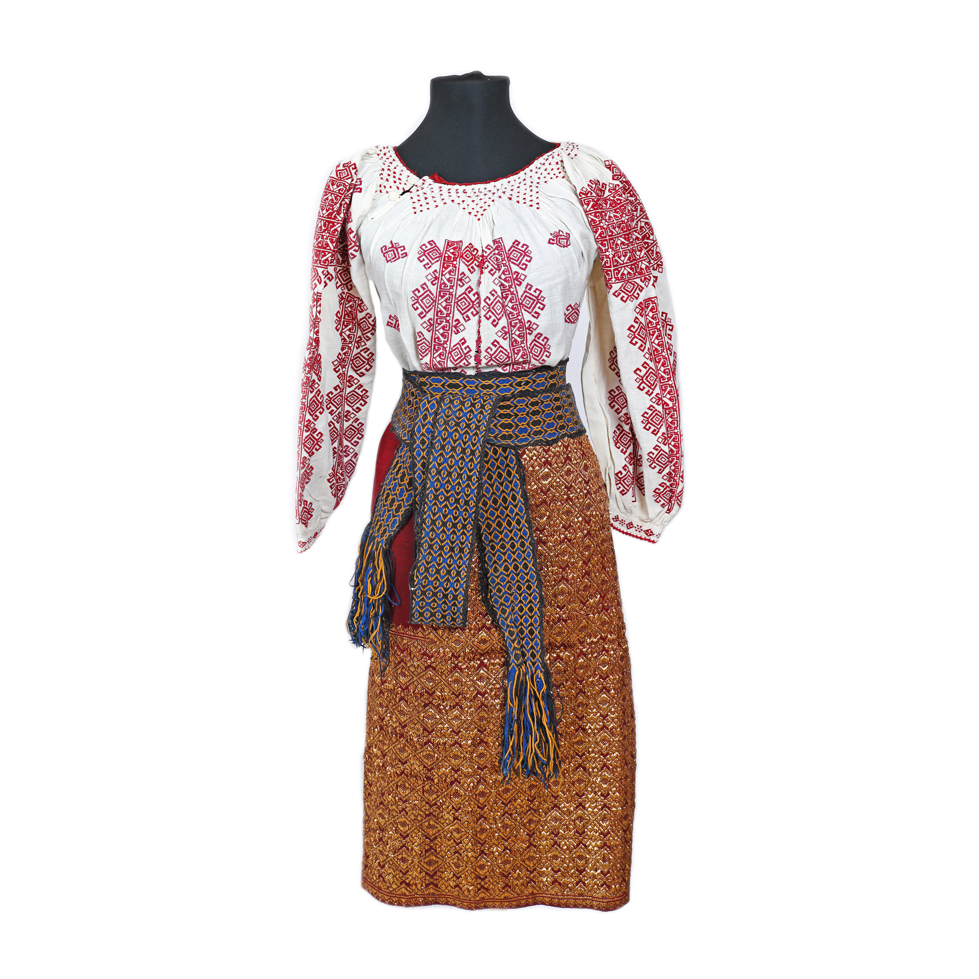 86. Costum popular alcătuit din ie, fotă și brâu, reprezentativ pentru zona Argeș, prima jumătate a sec. XX