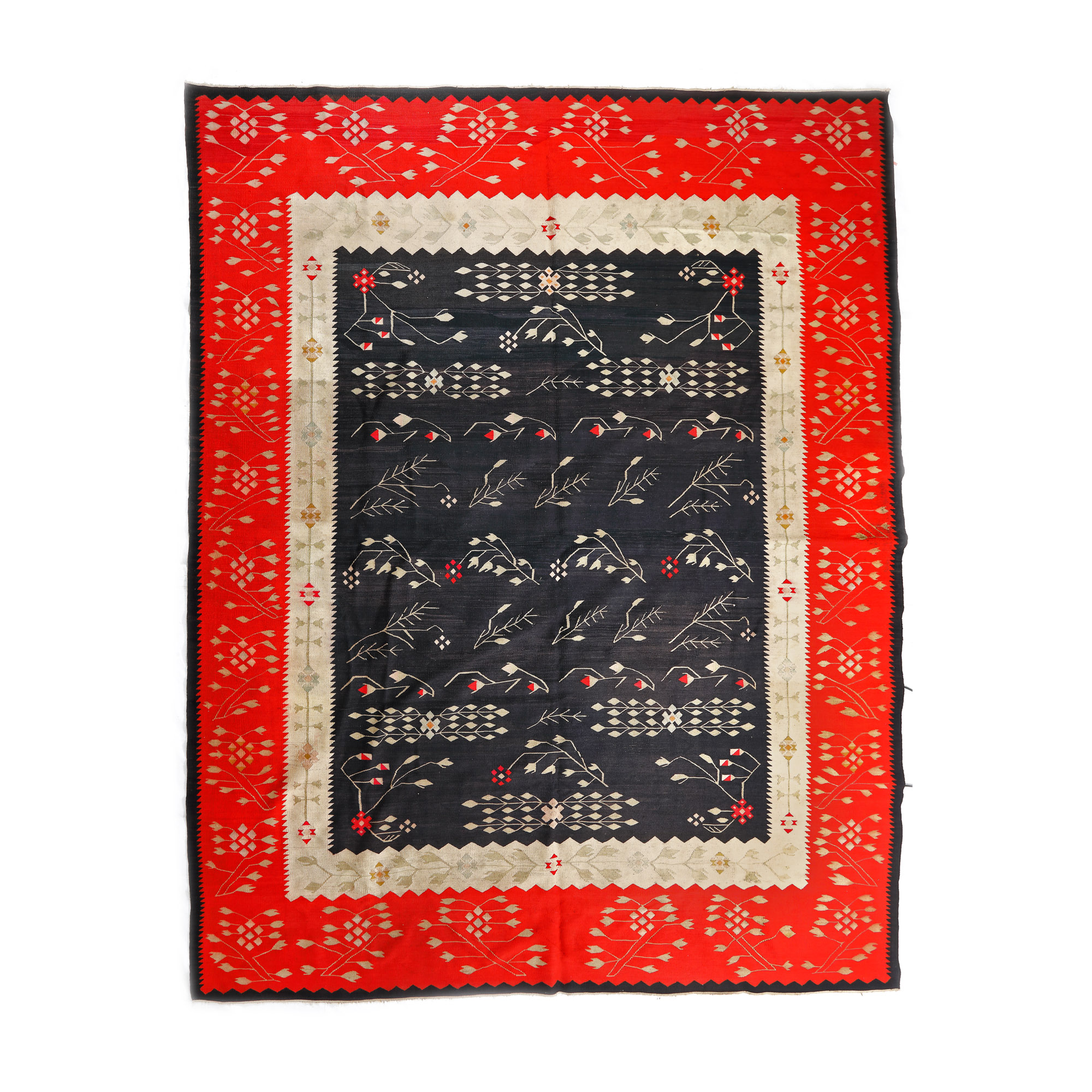 160. Covor oltenesc din lână, decorat cu crenguțe de cireș, prima jumătate a sec. XX