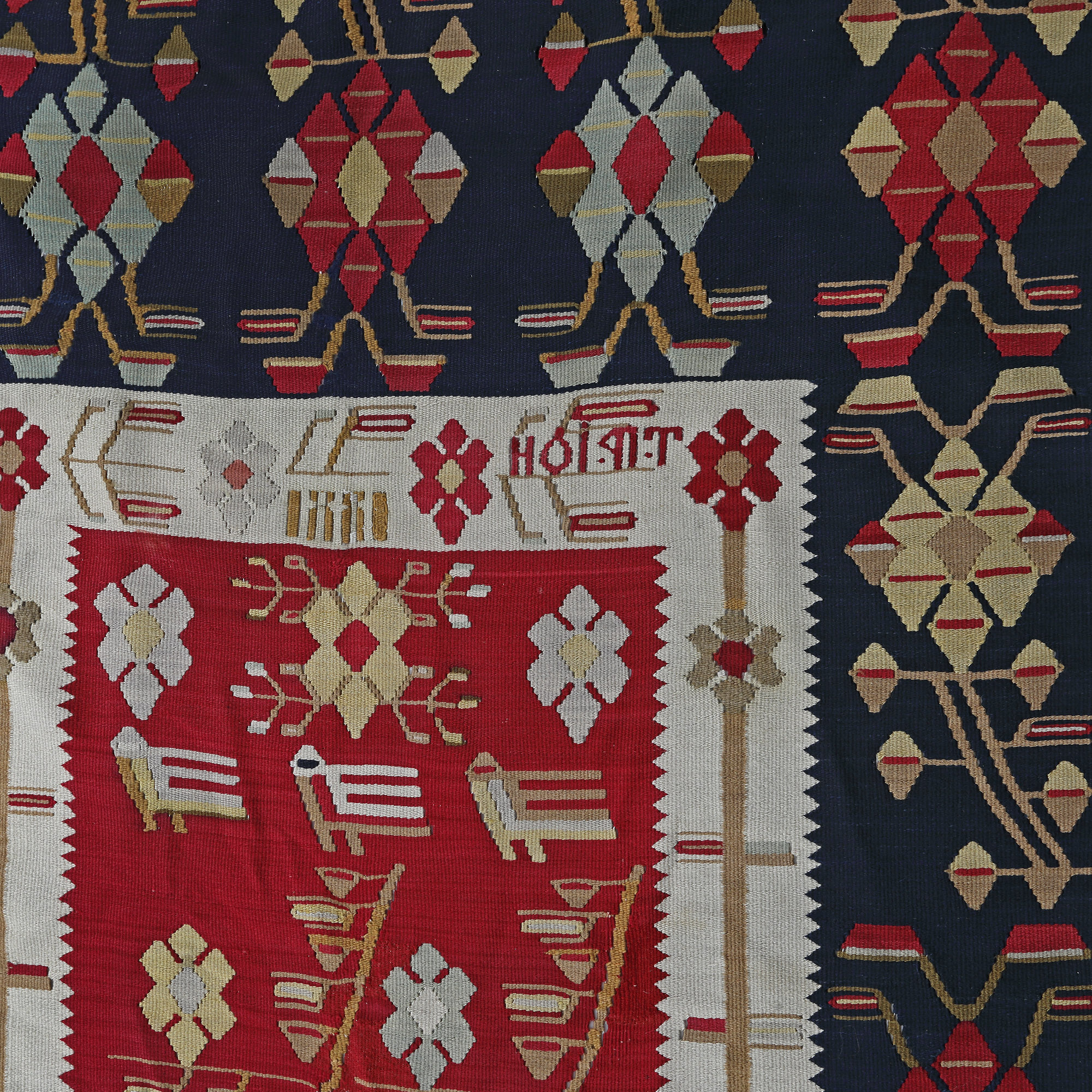 135. Covor oltenesc din lână, decorat cu motive florale, datat 1881