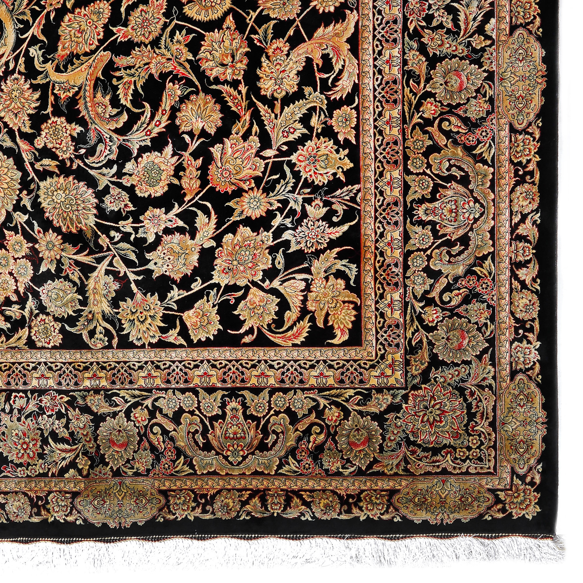 114. Covor Qum din mătase, bogat decorat cu motive florale, Iran