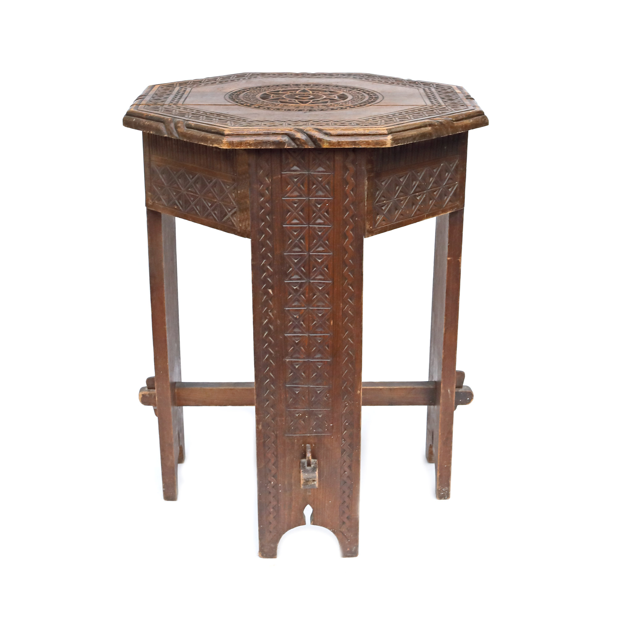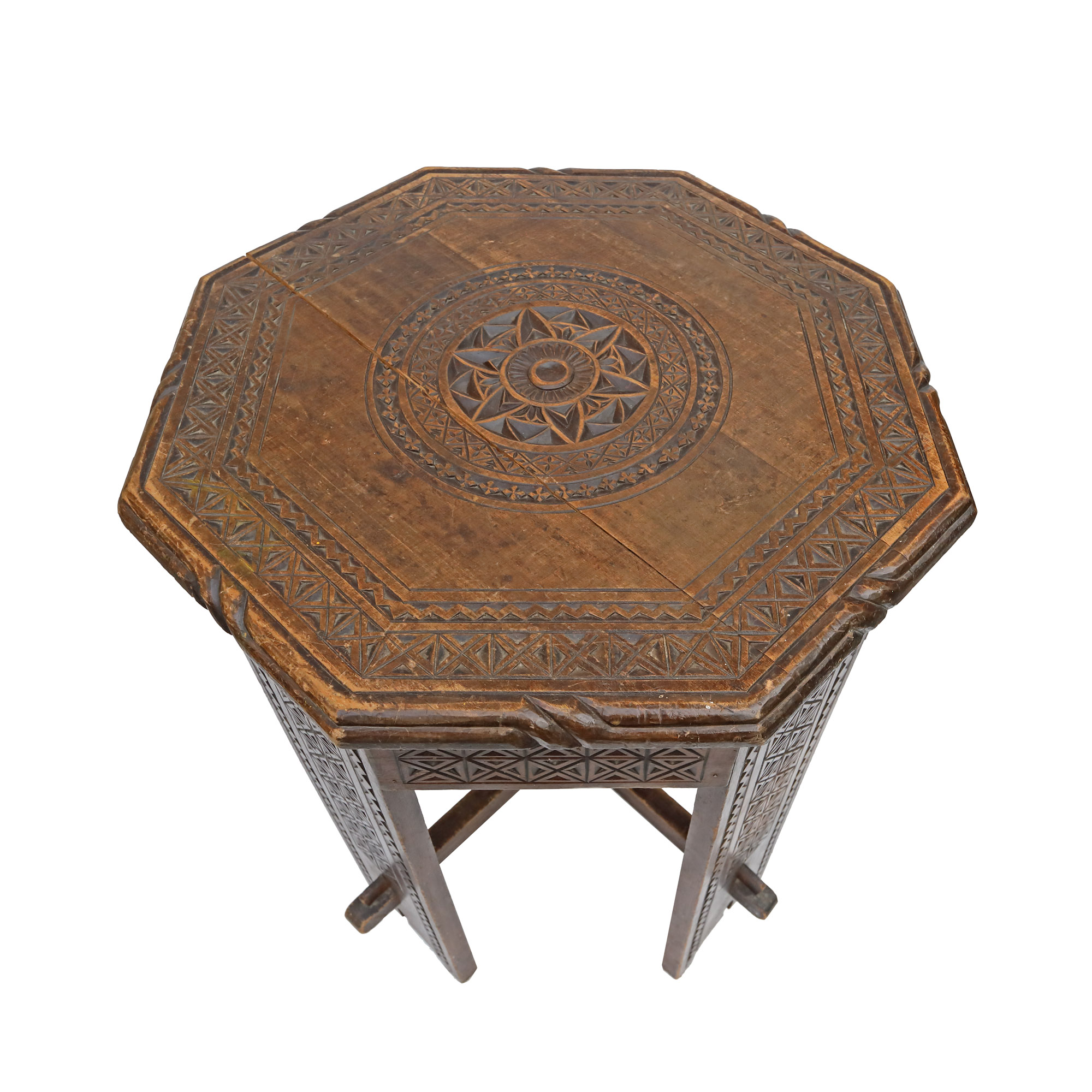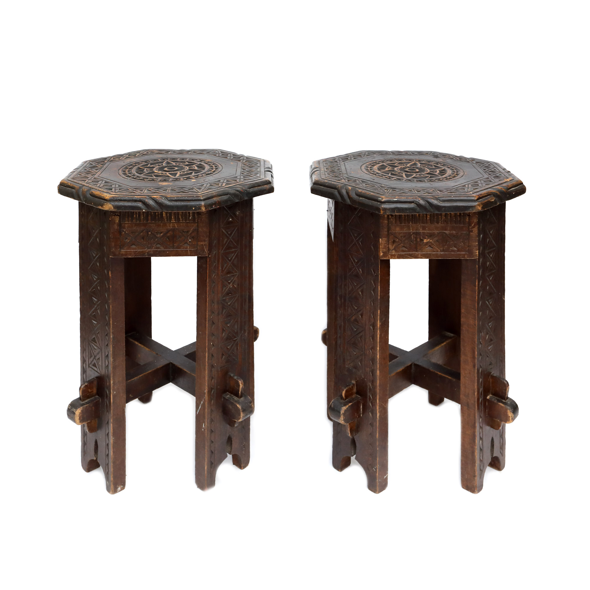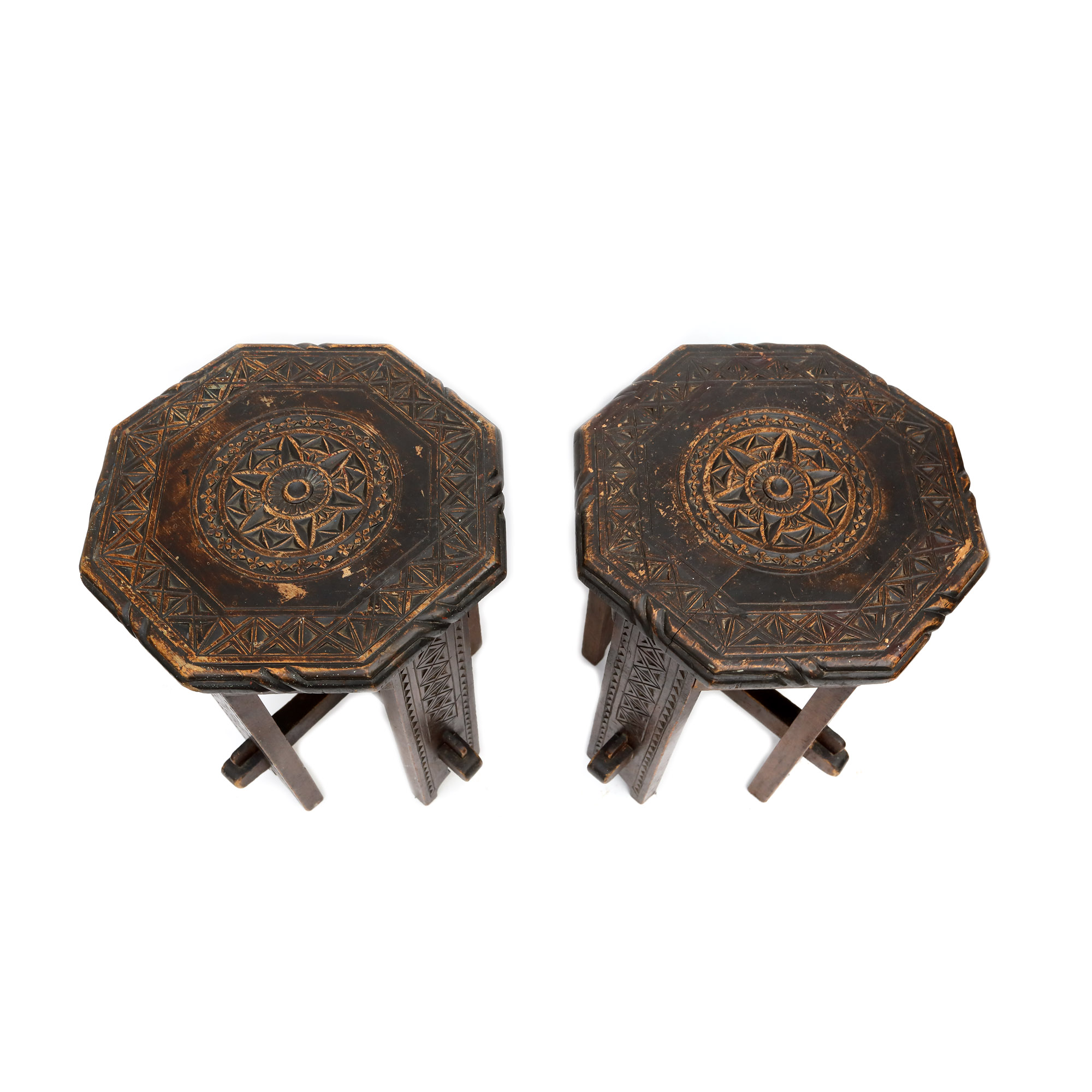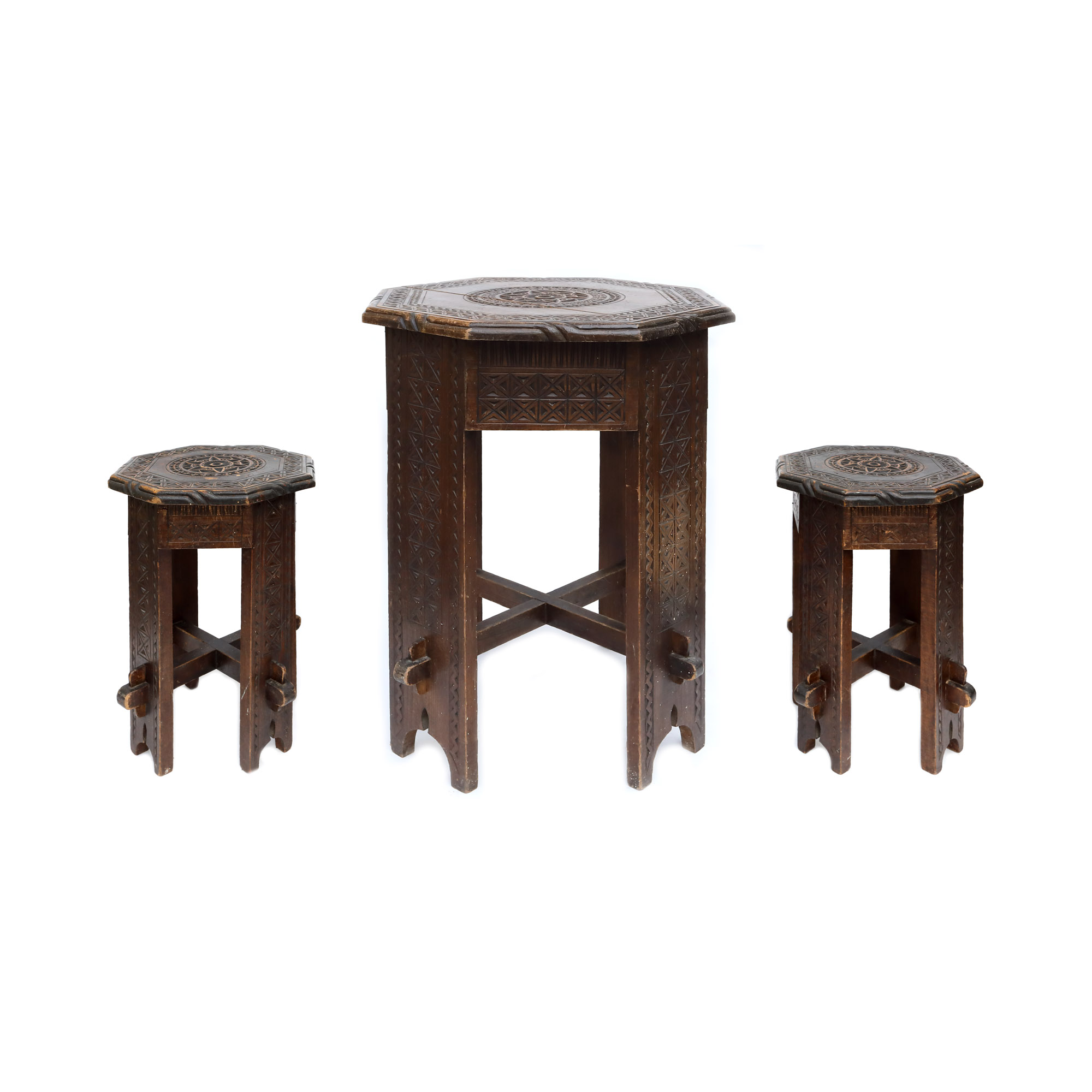 56. Garnitură formată din două scaune și o masă, sculptate în stil Neo-Brâncovenesc, mijlocul sec. XX