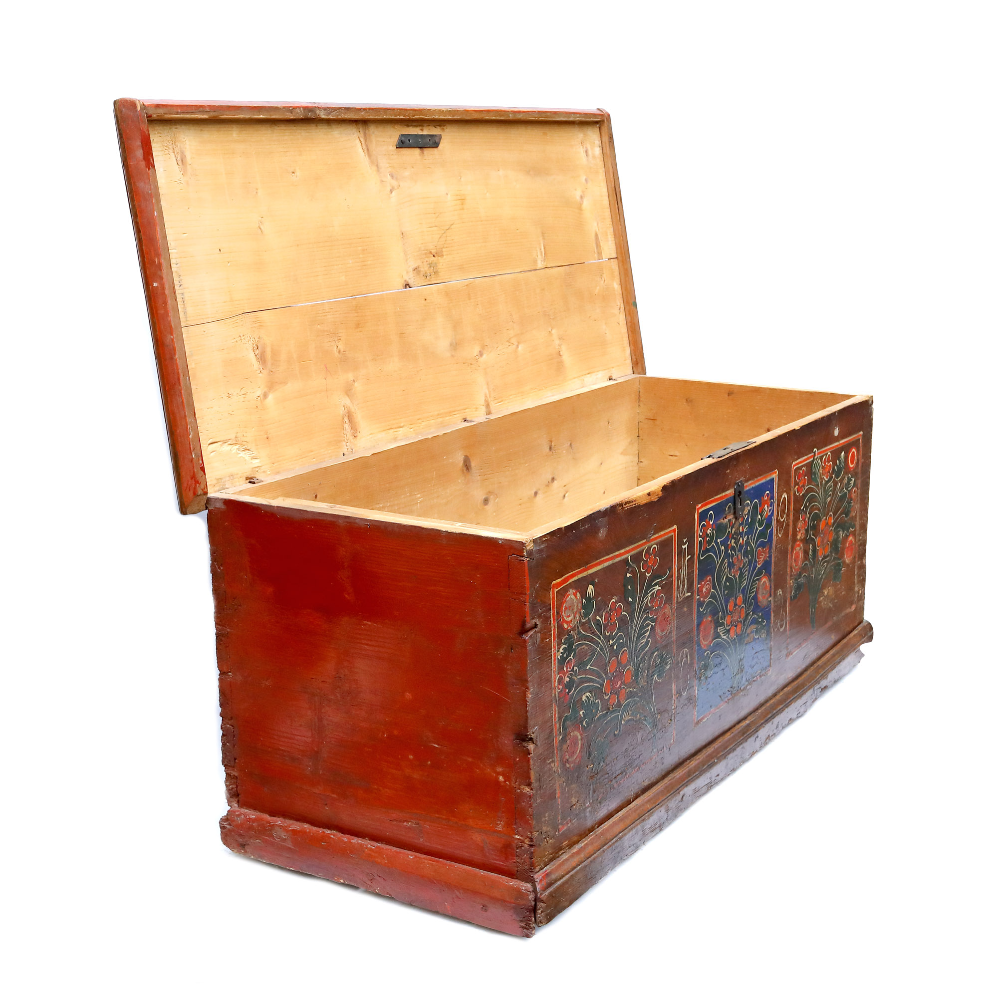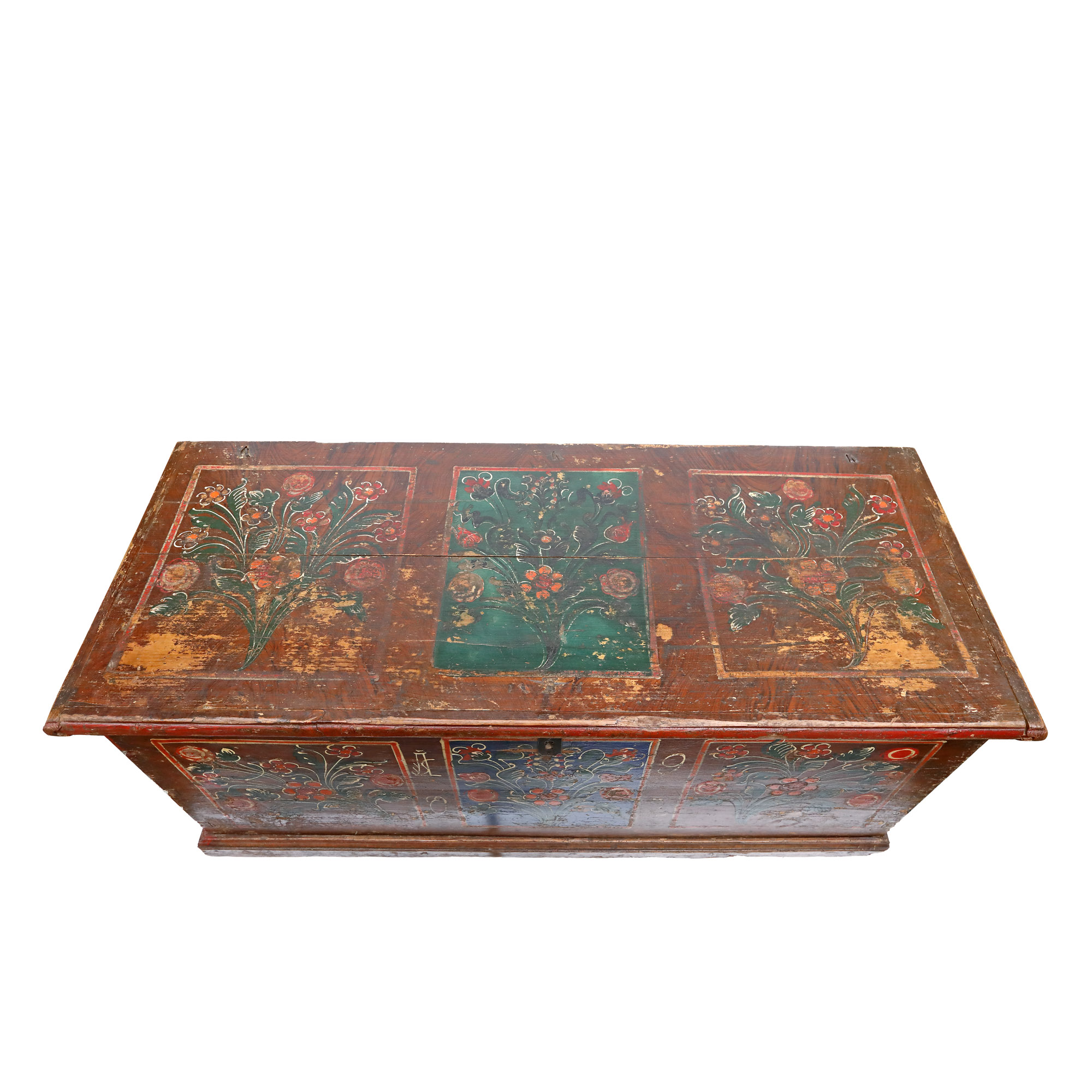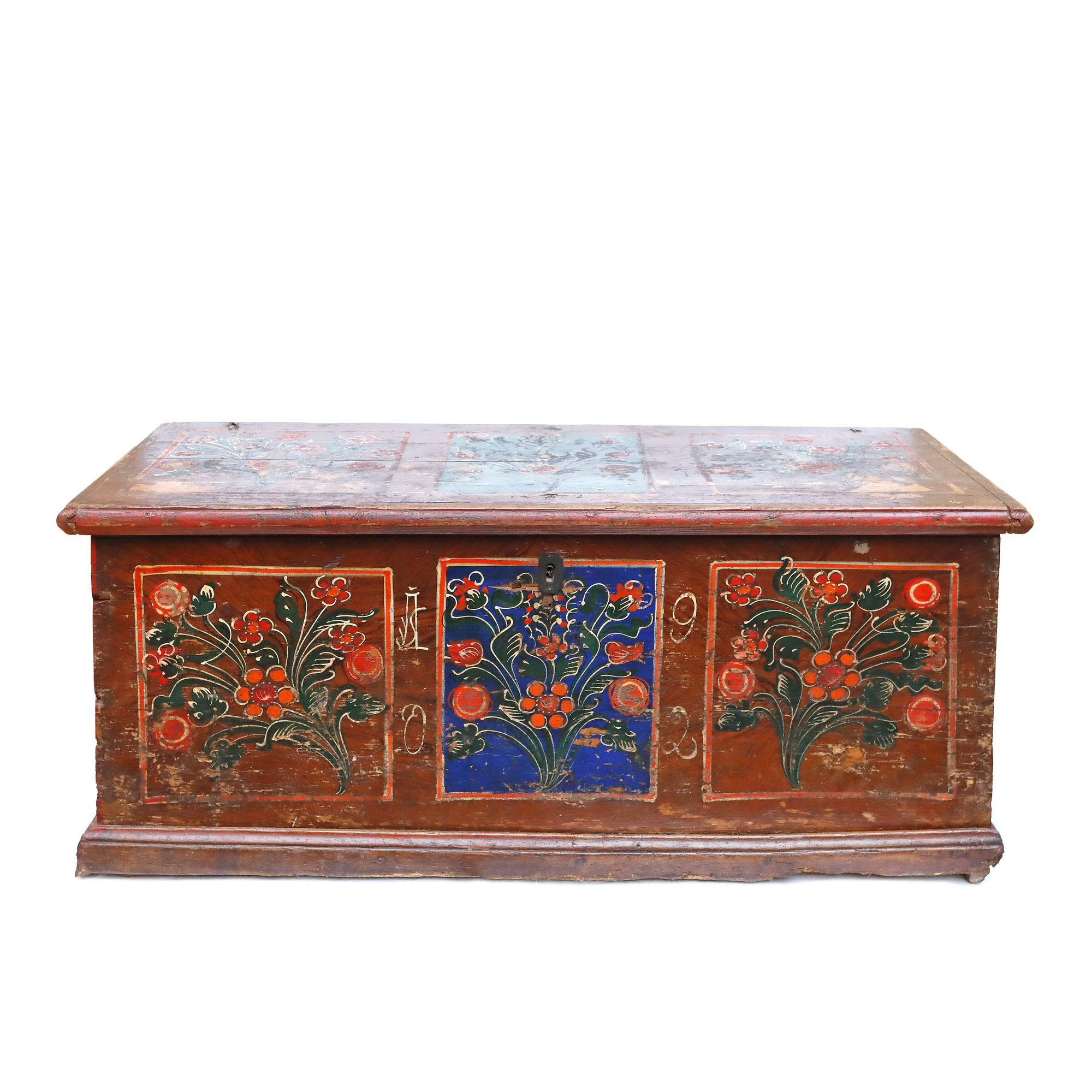 88. Ladă de zestre săsească, decorată cu buchete florale, probabil Mediaș, datată 1902