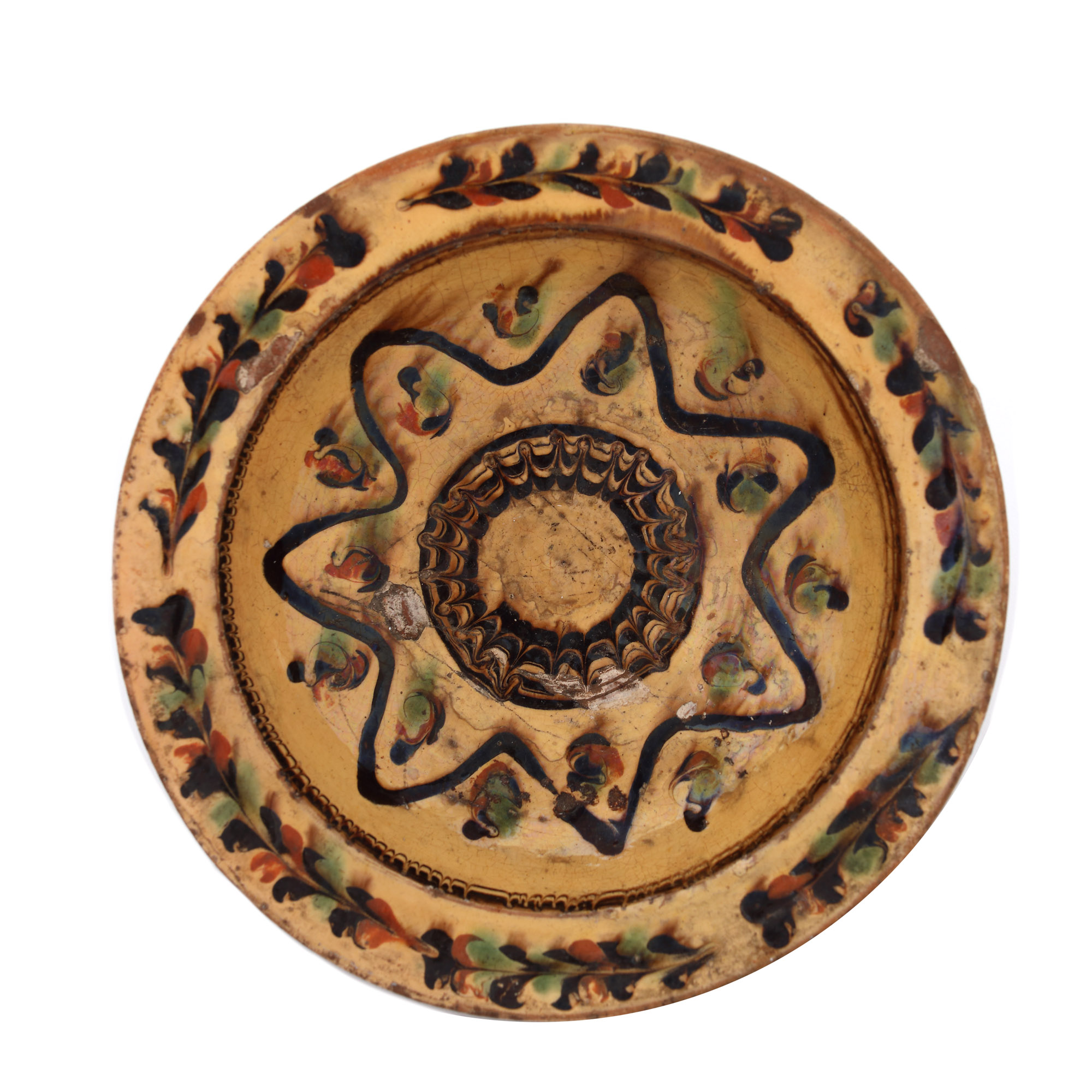 argilă comună, angobă, pigmenți minerali, smalț plombifer