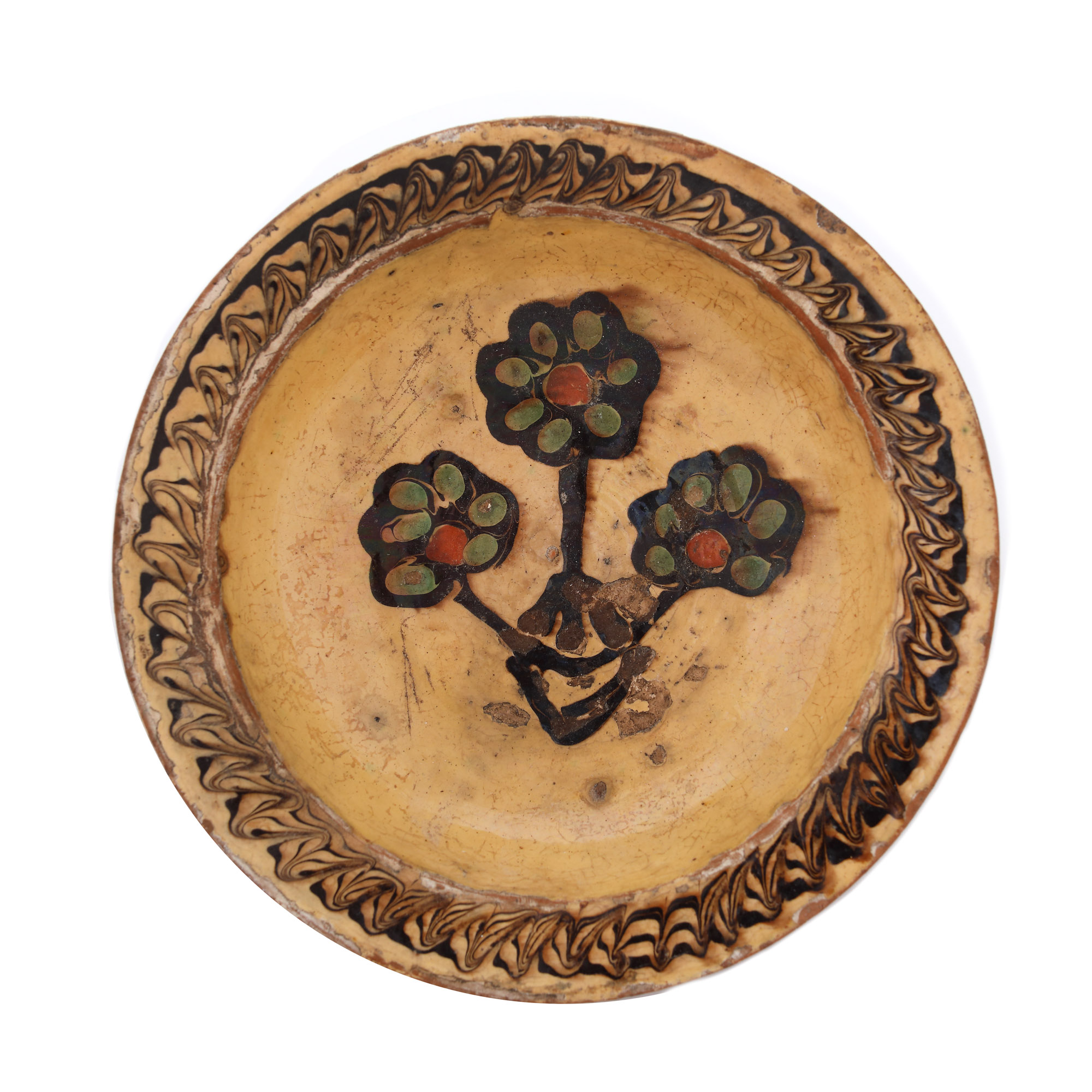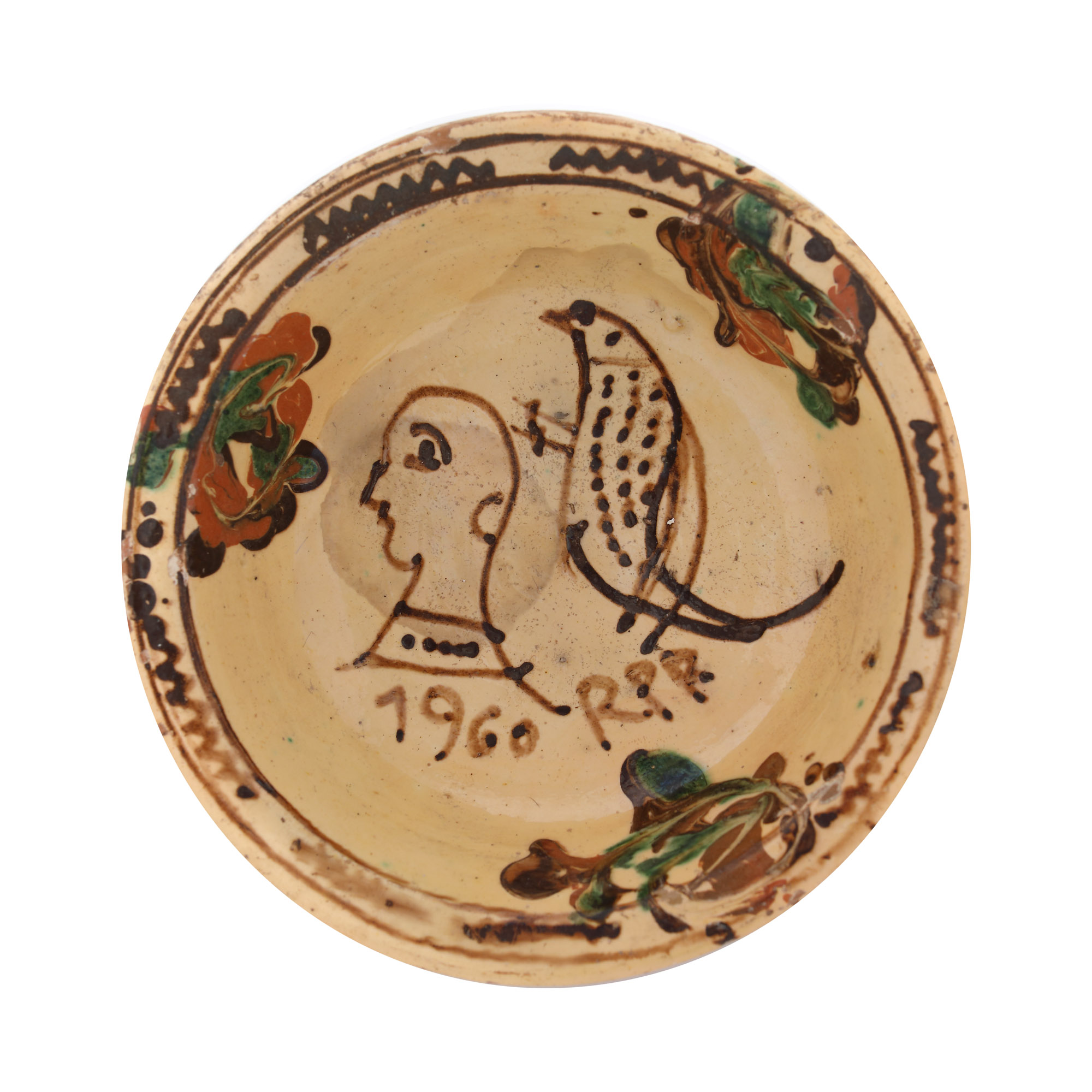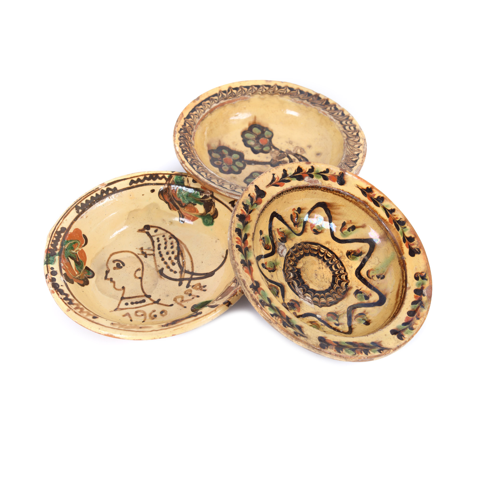 71. Lot format din trei farfurii din ceramică, Horezu, cca. 1900, dintre care una datată și inscripționată ”1960 R.P.R”