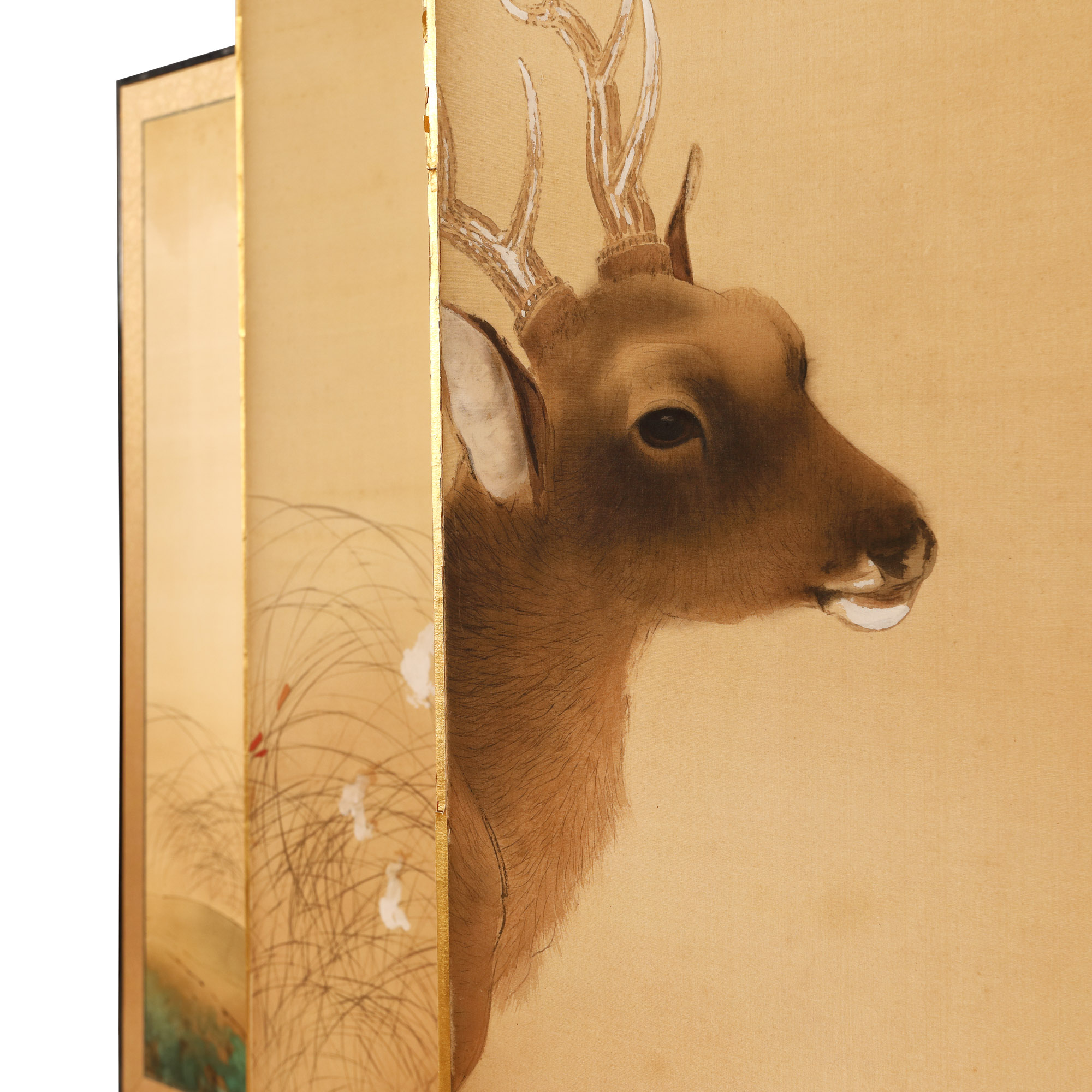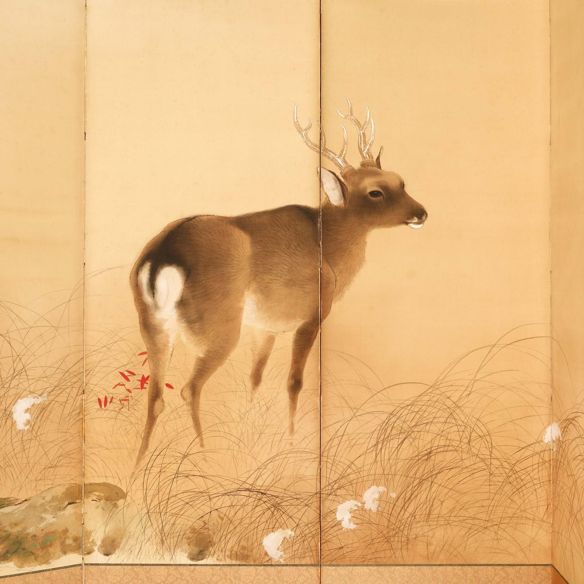 112. Paravan japonez din mătase ilustrând o căprioară pe timp de toamnă, școala Maruyama–Shijō [perioada Taishō, cca. 1920]
