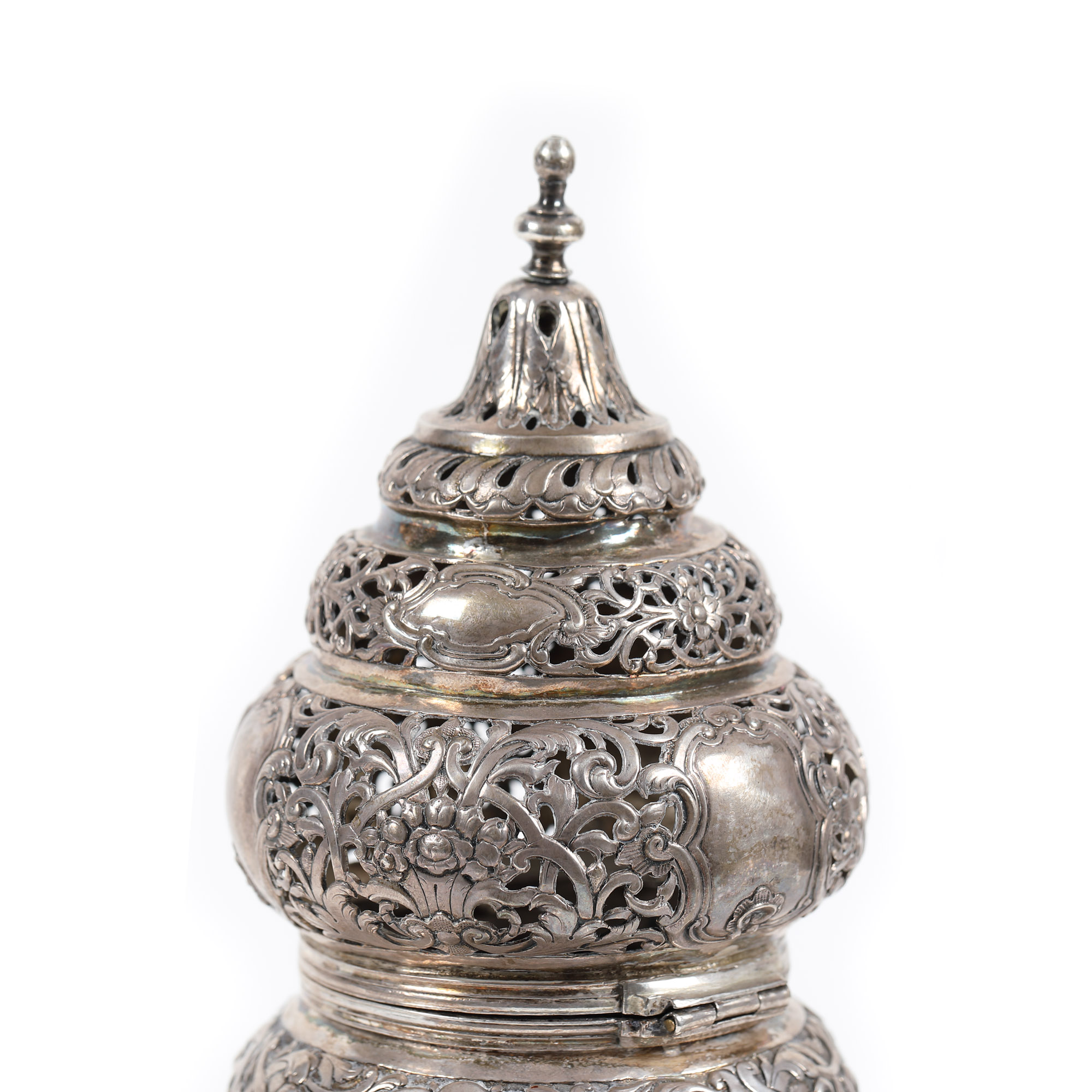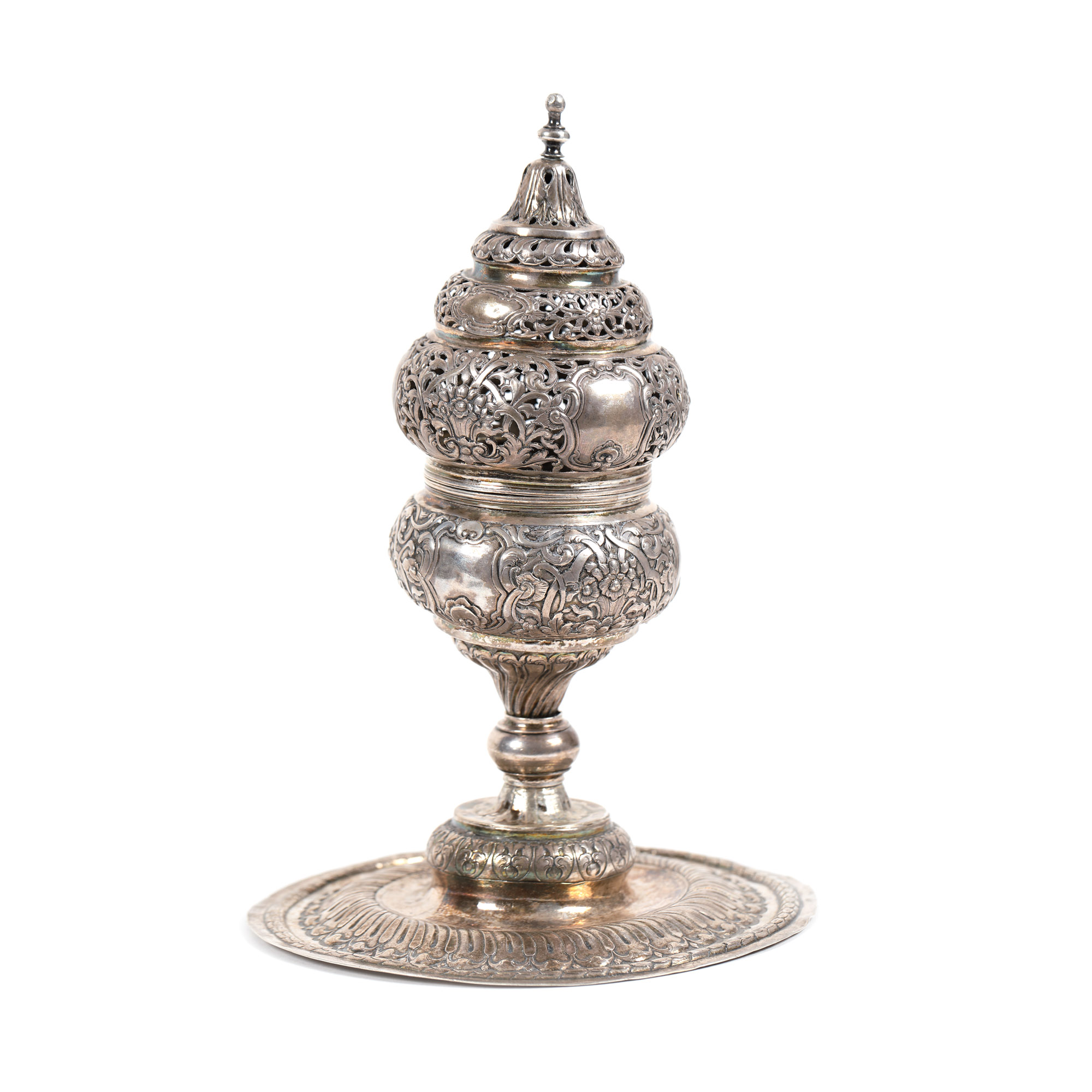 117. Vas pentru ars mirodenii cu picior (buhurdan), din argint, atelier otoman, sec. XVIII