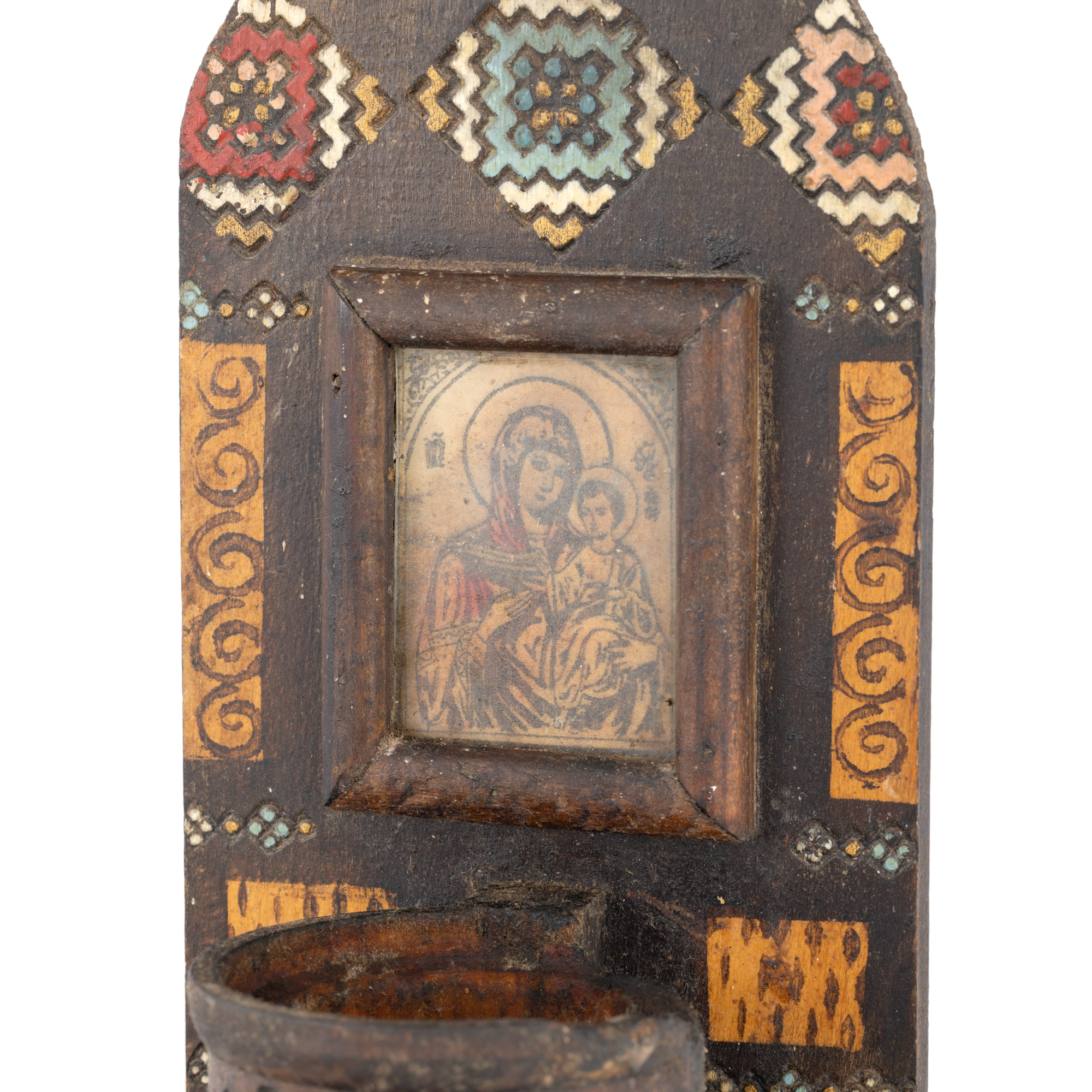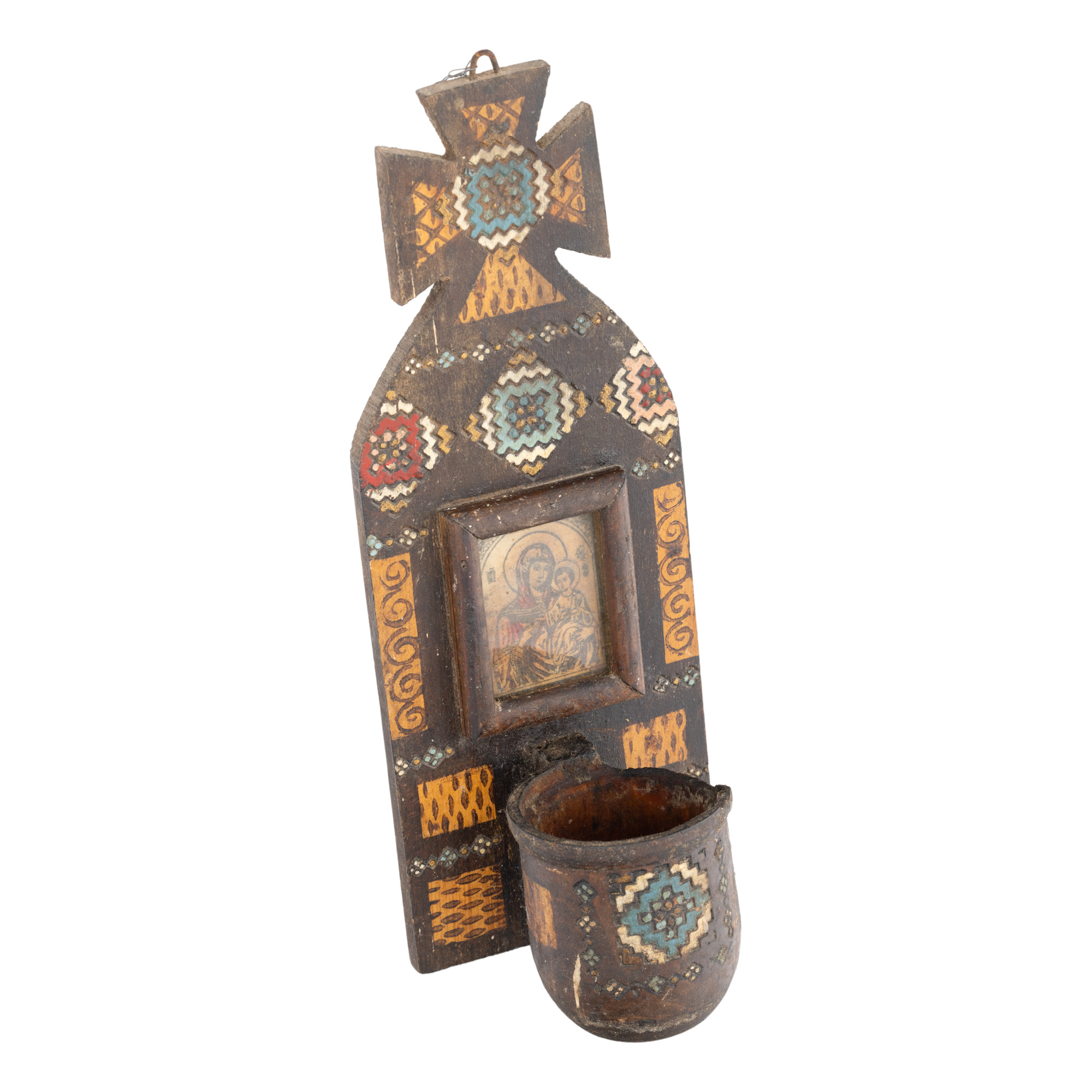 5. Candelă Neo-românească, din lemn pictat, prima jumătate a sec. XX