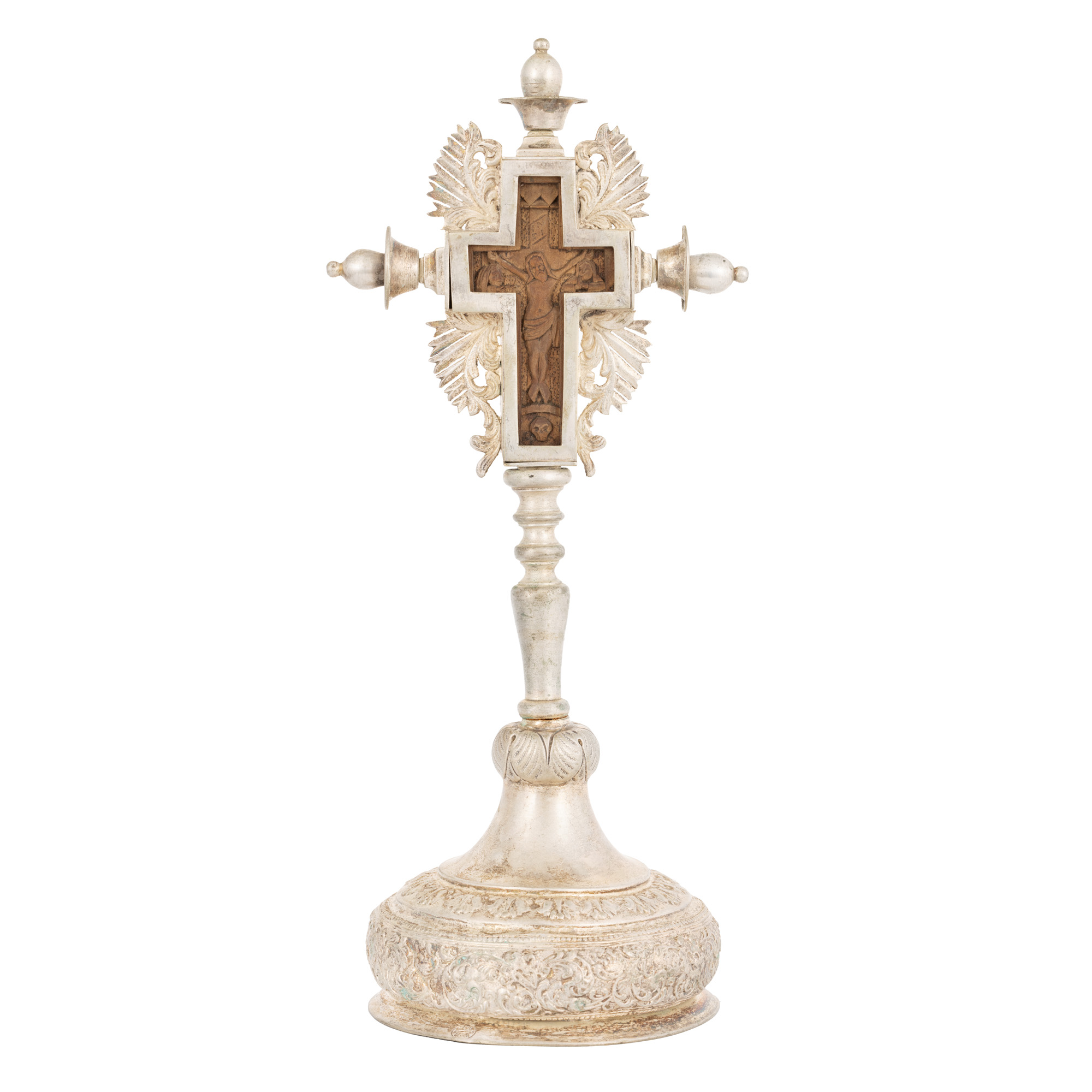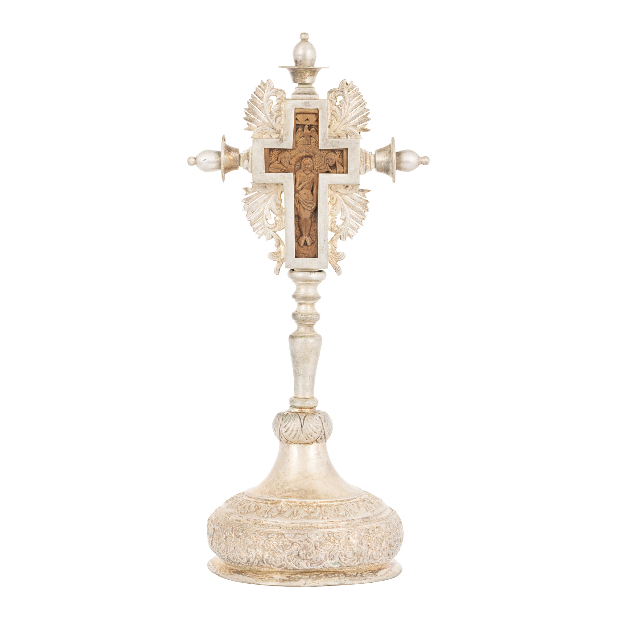 53. Cruce de masă, decorată cu scenele ”Răstignirea” și ”Botezul Domnului”, atelier Frații Bloch, sec. XIX, piesă rară