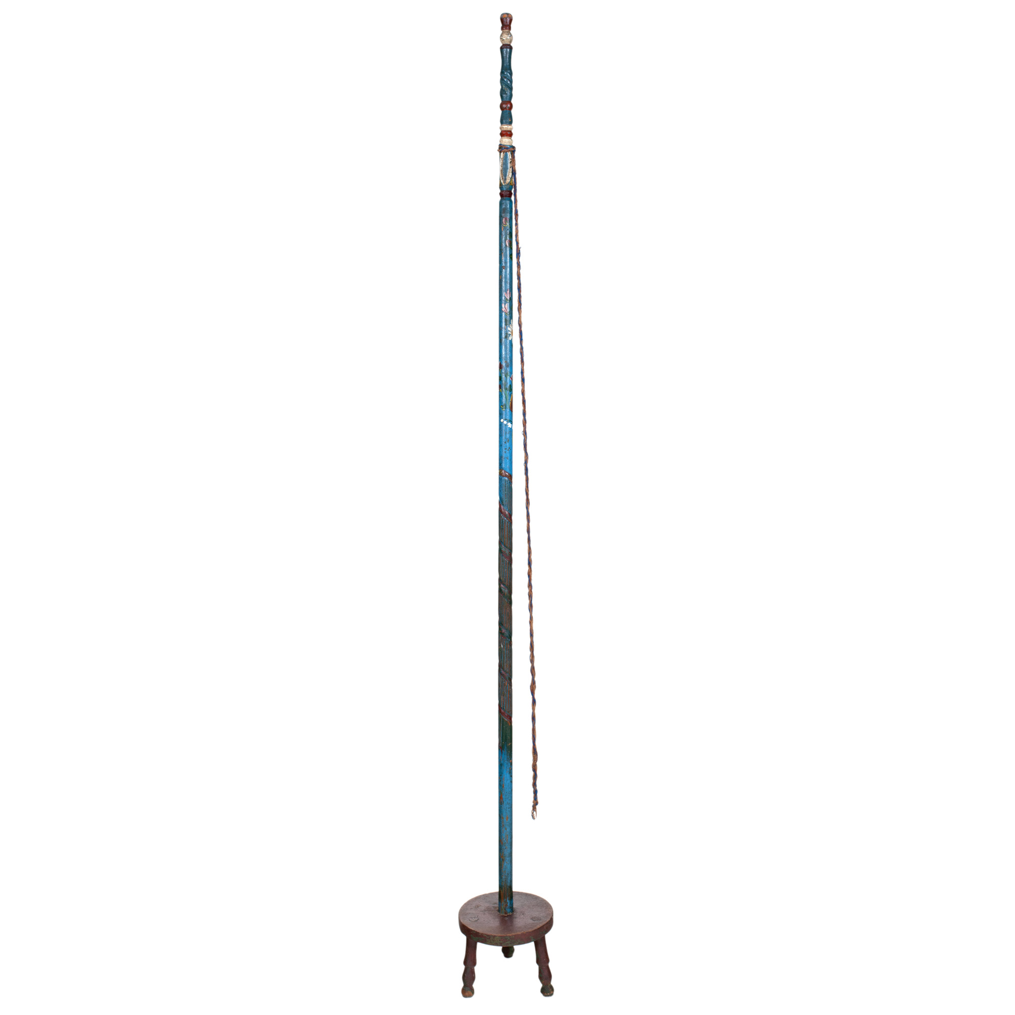 42. Furcă de tors săsească, din lemn de brad pictat cu motive florale, zona Viscri, sfârșitul sec. XIX