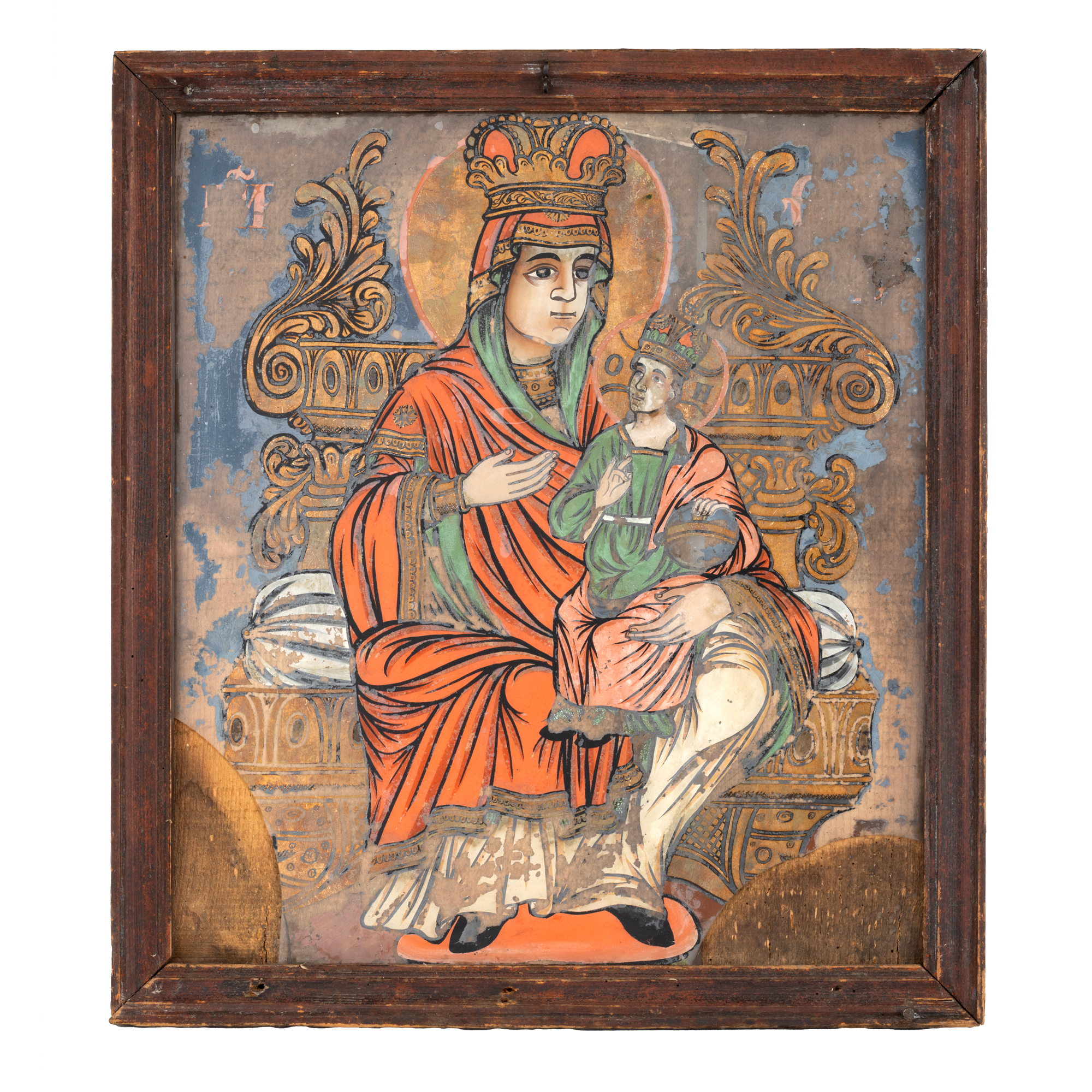 67. Icoană pe glajă, "Maica Domnului cu Pruncul (Hodighitria)", zugrav Ioan Pop, Făgăraș, prima jumătate a sec. XIX, piesă rară, de colecție
