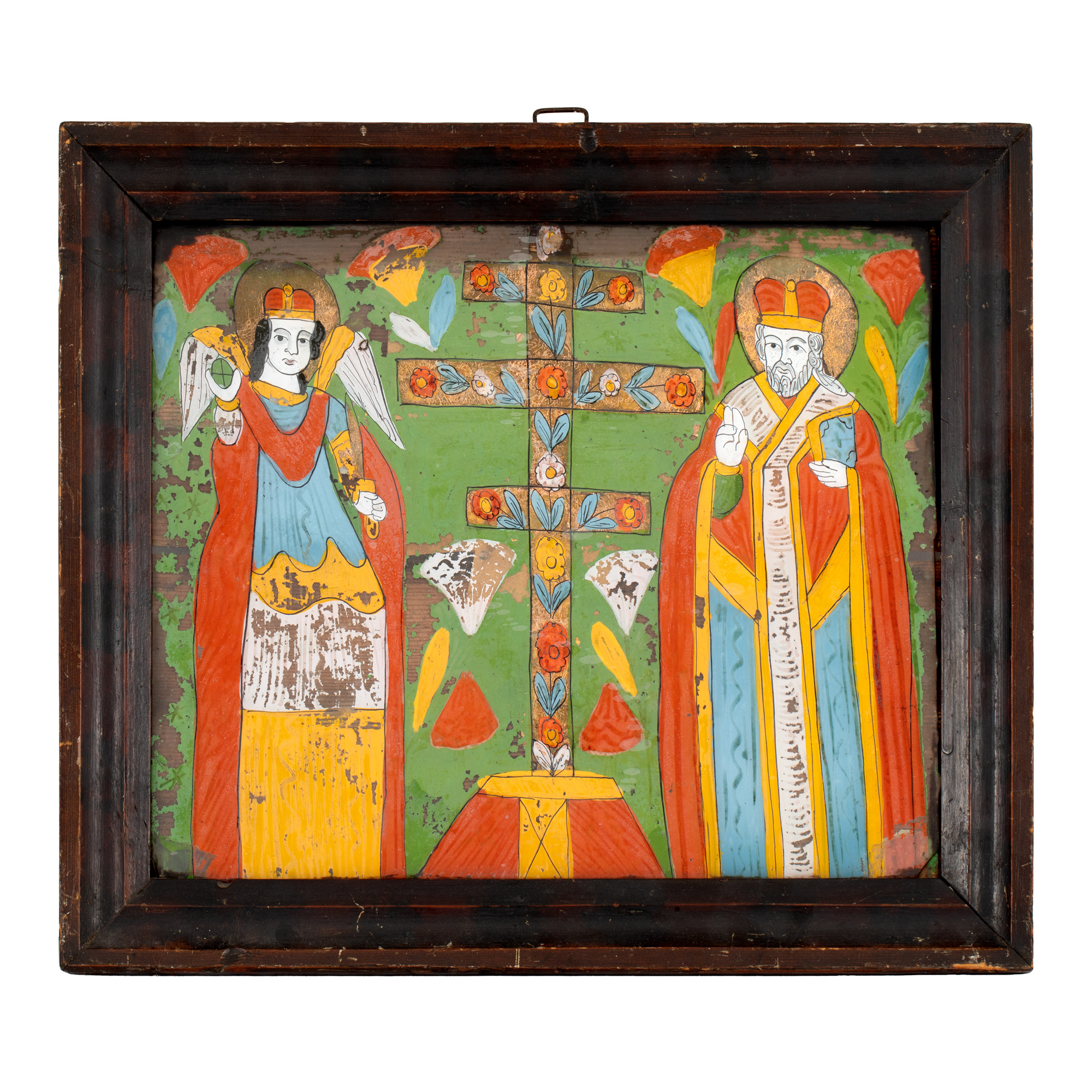 58. Icoană pe glajă, ”Sfânta Paraschiva și Sfântul Nicolae”, atelier din Nordul Moldovei, sec. XIX