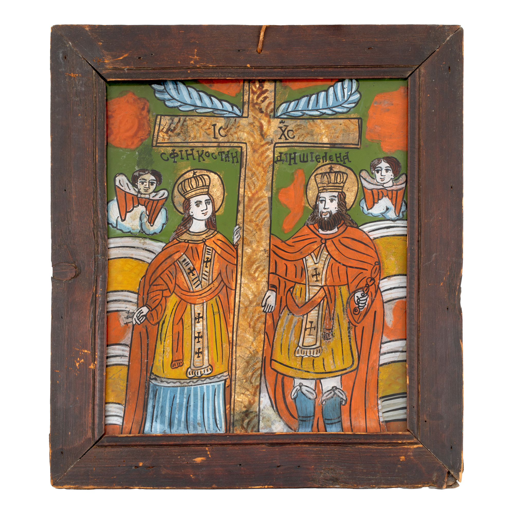 64. Icoană pe glajă, "Sfinții Împărați Constantin și Elena", atelier din Șcheii Brașovului, a doua jumătate a sec. XIX, provine din din colecția compozitorului german Rudolf Ewerhart