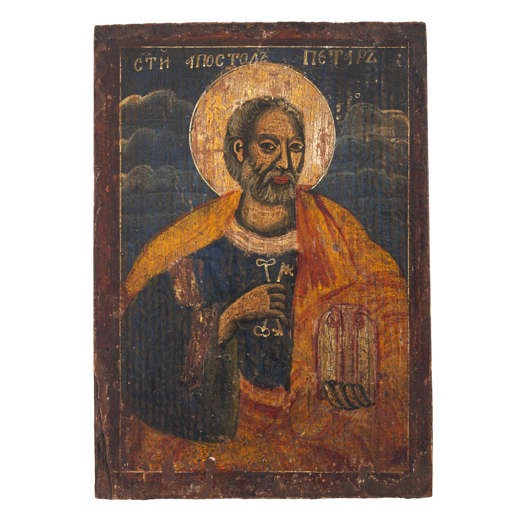 118. Icoană pe lemn, ”Sfântul Apostol Petru”, școală românească, prima jumătate a sec. XIX