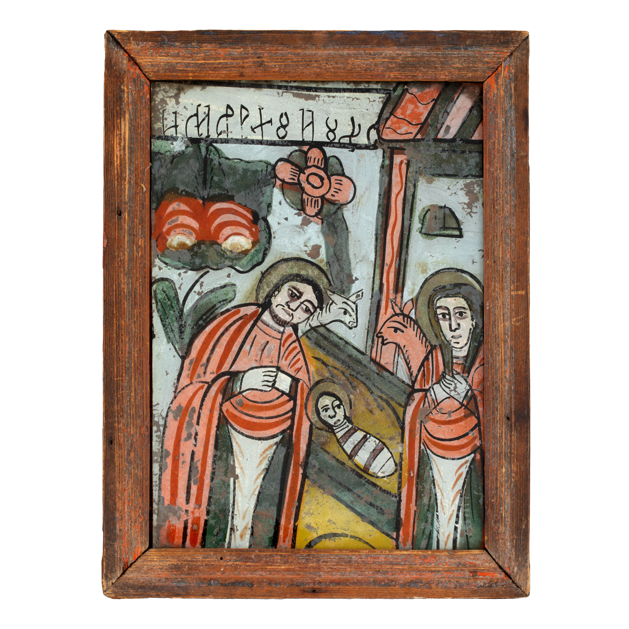 77. Icoană pe sticlă, ”Nașterea Domnului”, atelier din Gherla, sfârșitul sec. XIX