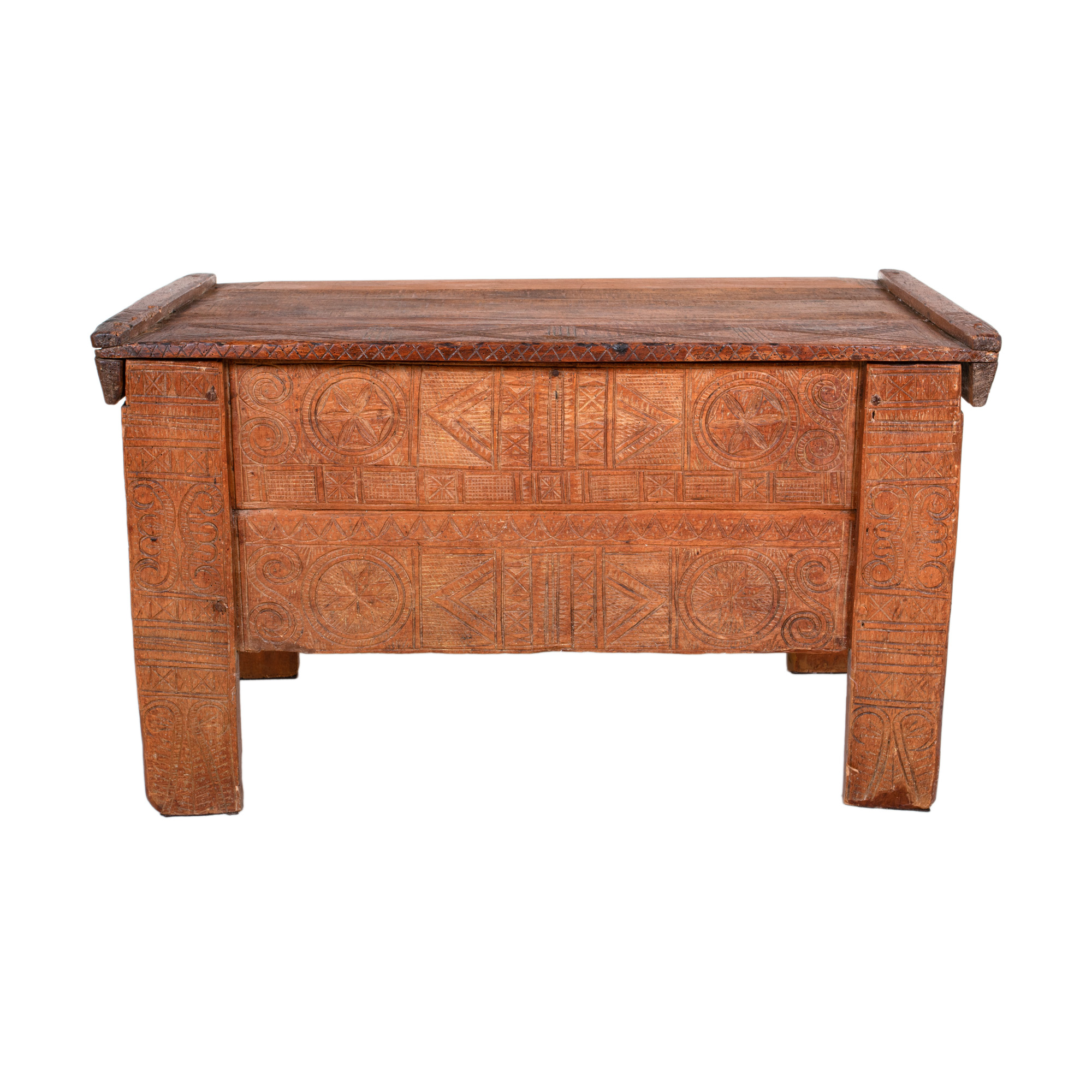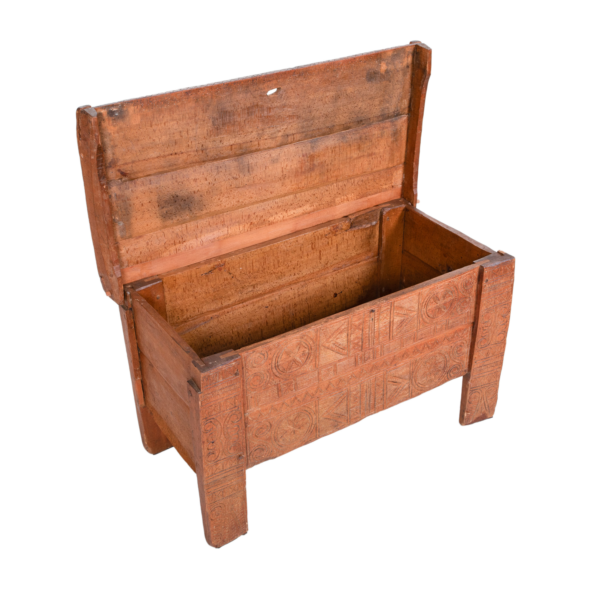 26. Ladă de zestre din lemn de fag, decorată cu rozete solare și ”dinți de lup”, atelier rural, Transilvania, începutul sec. XX