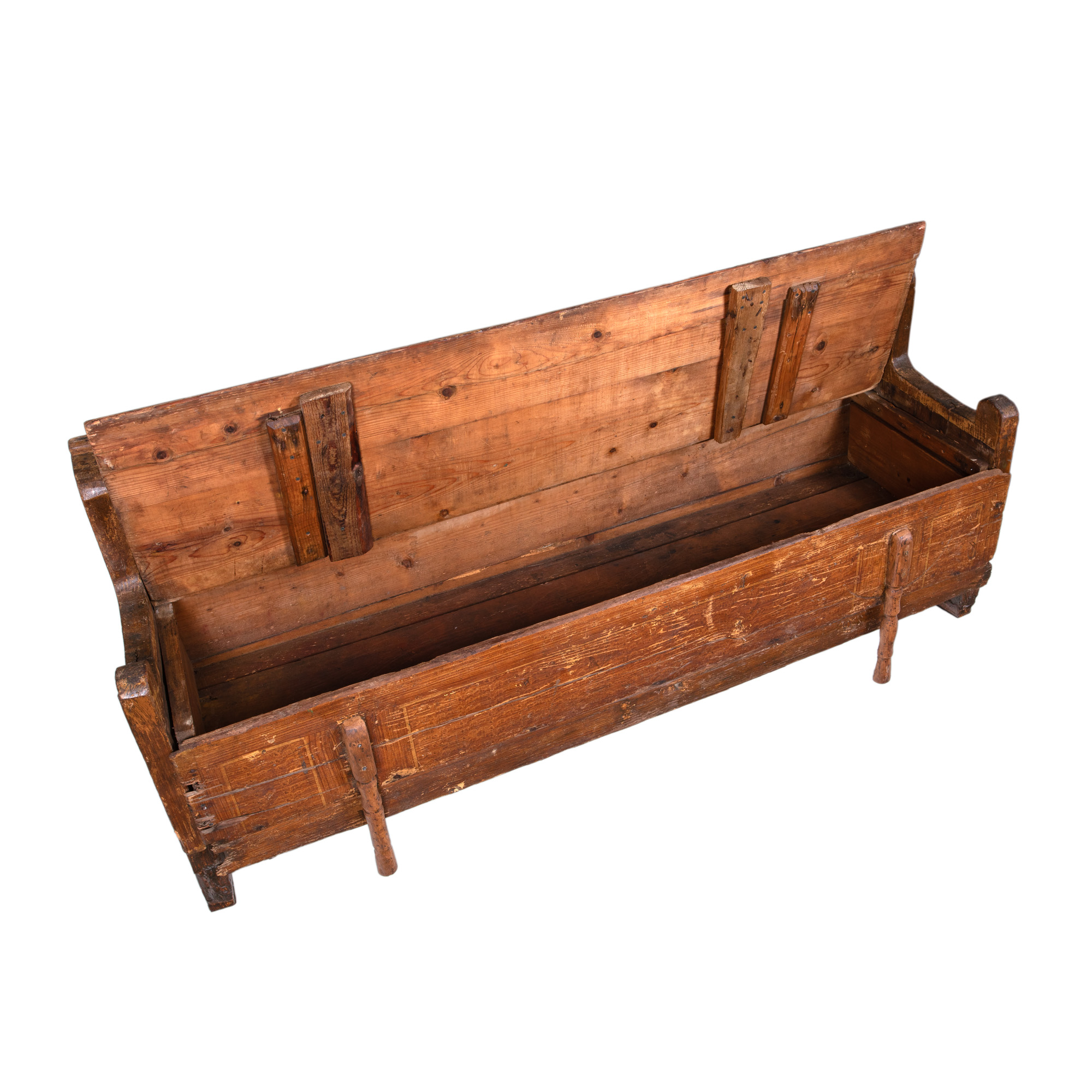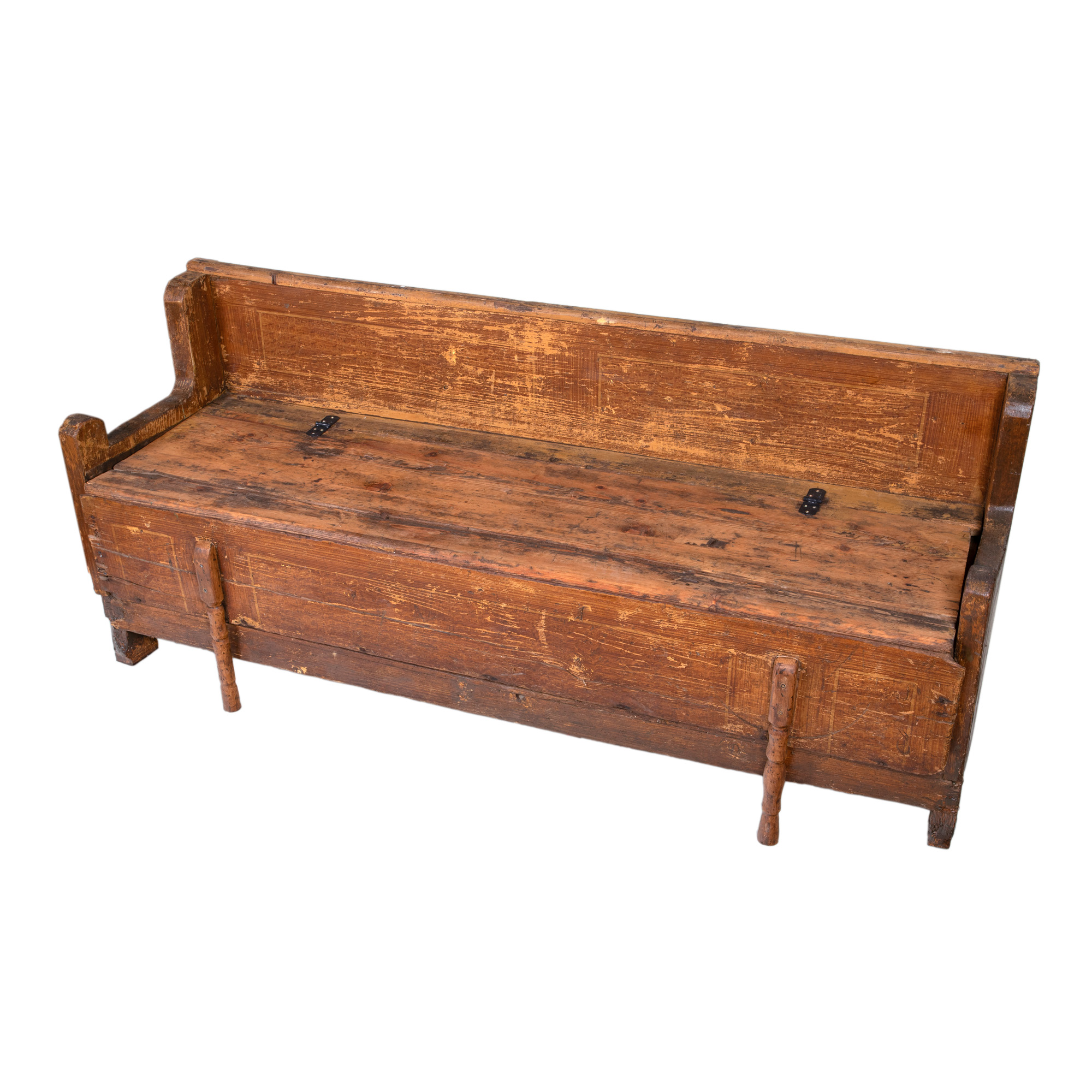 18. Laviță săsească din lemn de brad, cu spațiu pentru depozitare, Sibiu, mijlocul sec. XIX