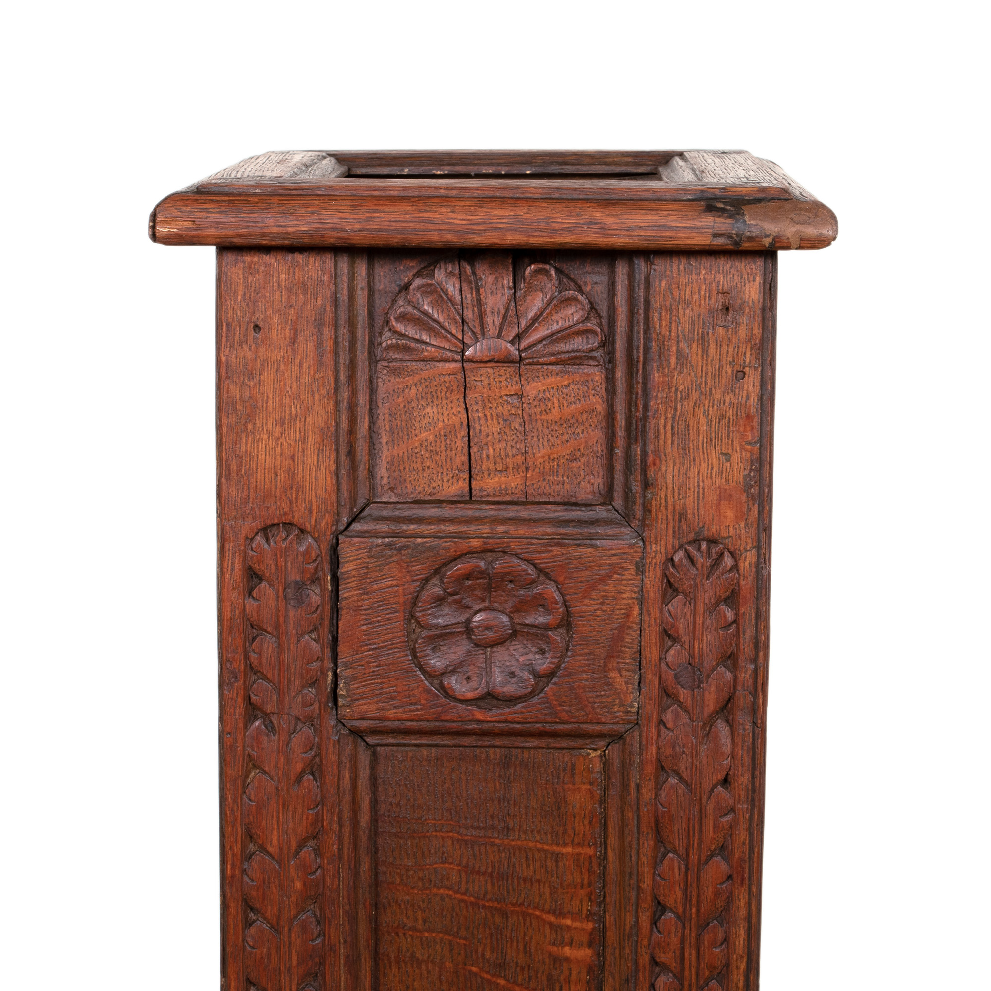 2. Piedestal din lemn de stejar, decorat cu motive solare, mijlocul sec. XX