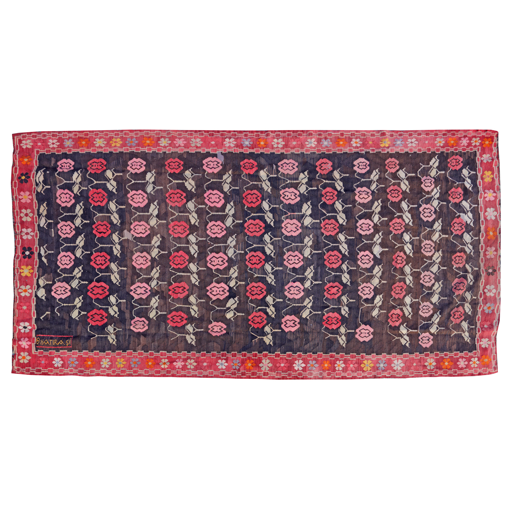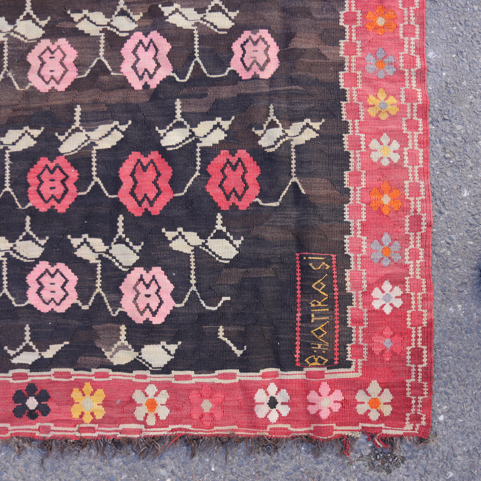 69. Covor basarabean din lână, decorat cu motive florale, inscripționat cu numele proprietarului, sfârșitul sec. XIX, piesă rară