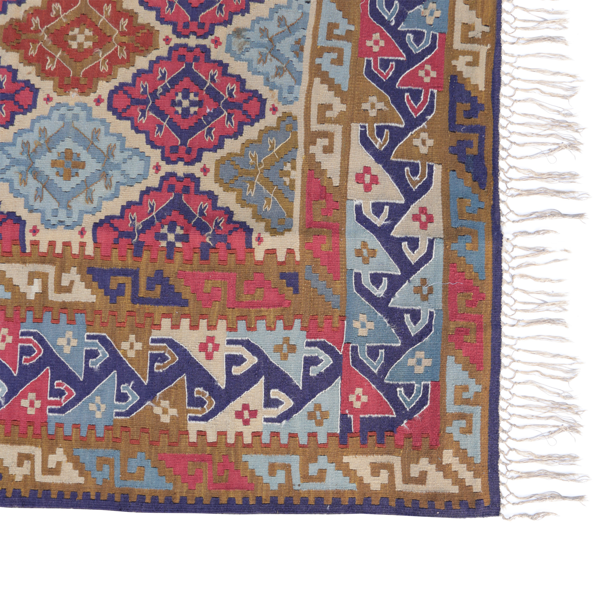 71. Covor Kilim turcesc, din lână, decorat cu motive geometrice stilizate, prima jumătate a sec. XX