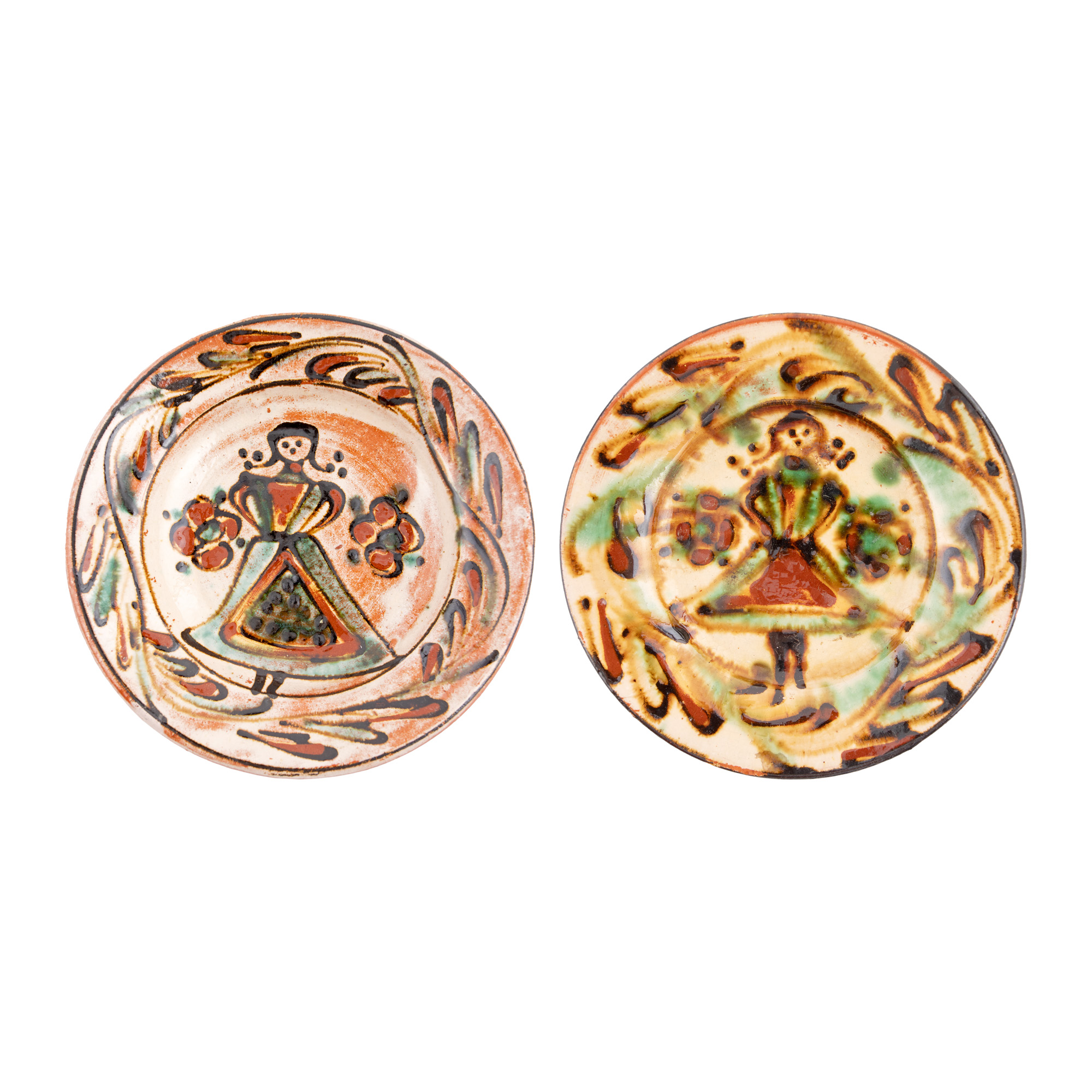 63. Lot format din două platouri decorate cu figuri feminine, Transilvania, prima jumătate a sec. XX