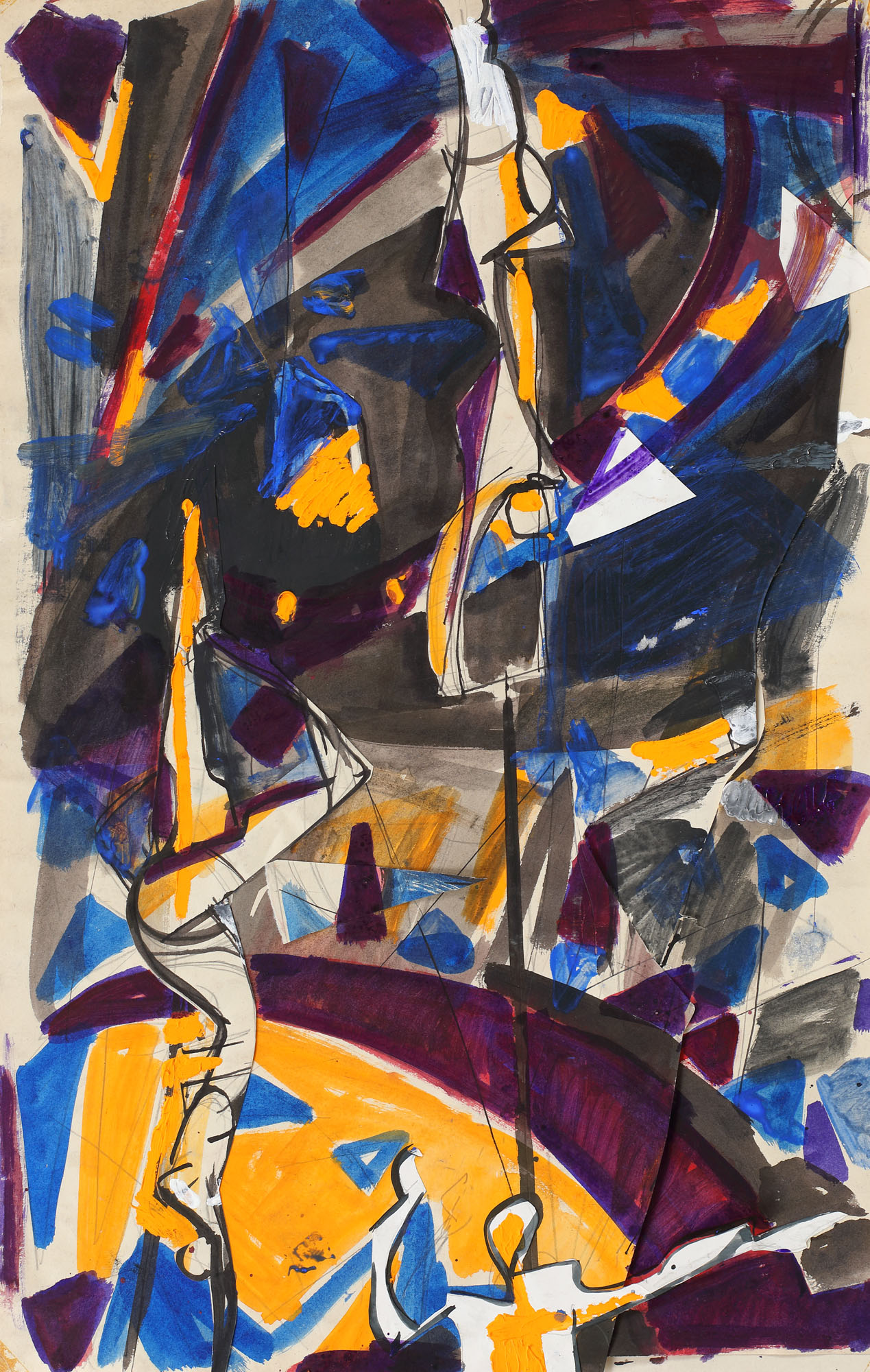 tempera, acuarelă, creion și colaj pe hârtie lipită pe carton