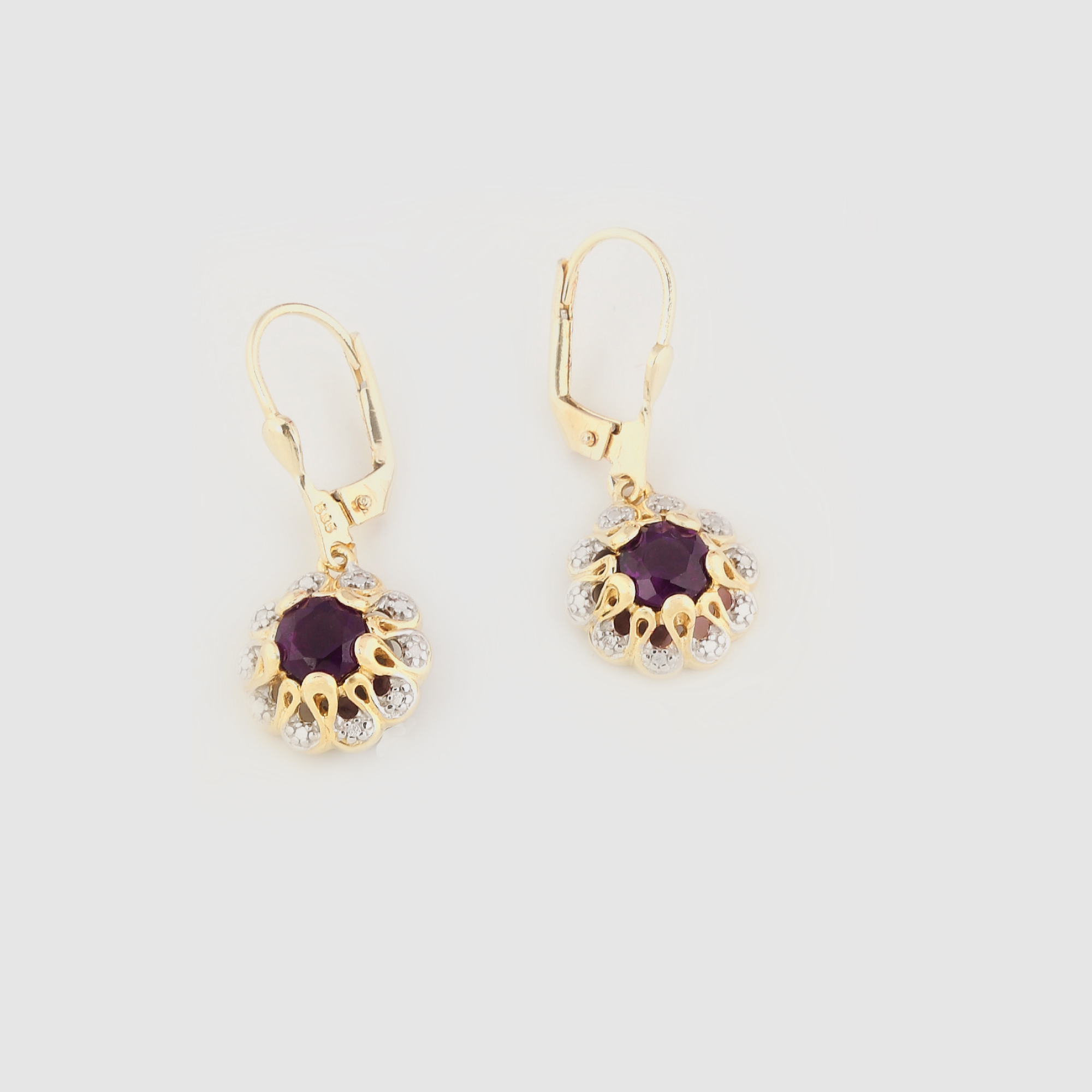 452. Pereche de cercei din aur, decorată cu ametiste
