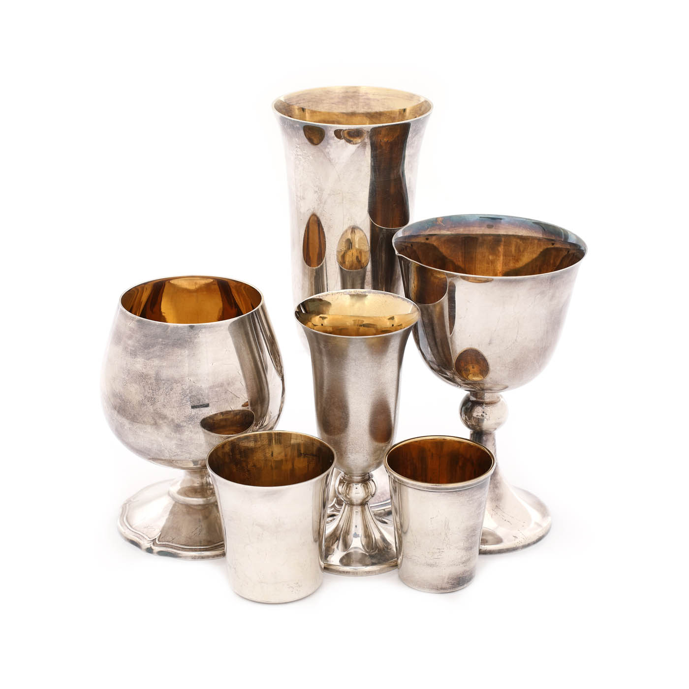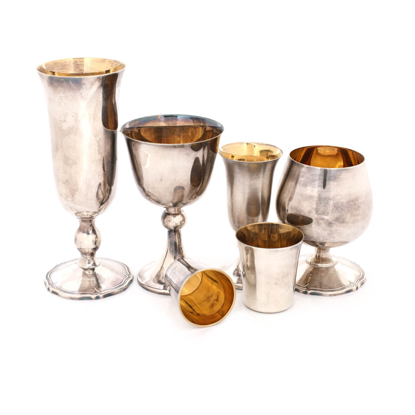 53. Colecție de șase pahare din argint, cu interior aurit [A doua jumătate a sec. XX]