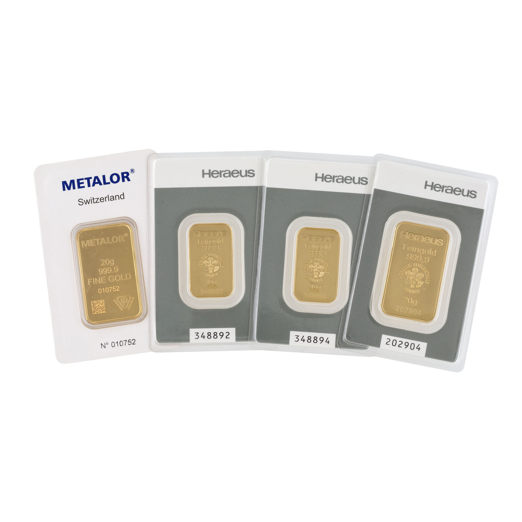 84. Lot format din patru lingouri din aur, sigilate, de 10 respectiv 20 g
