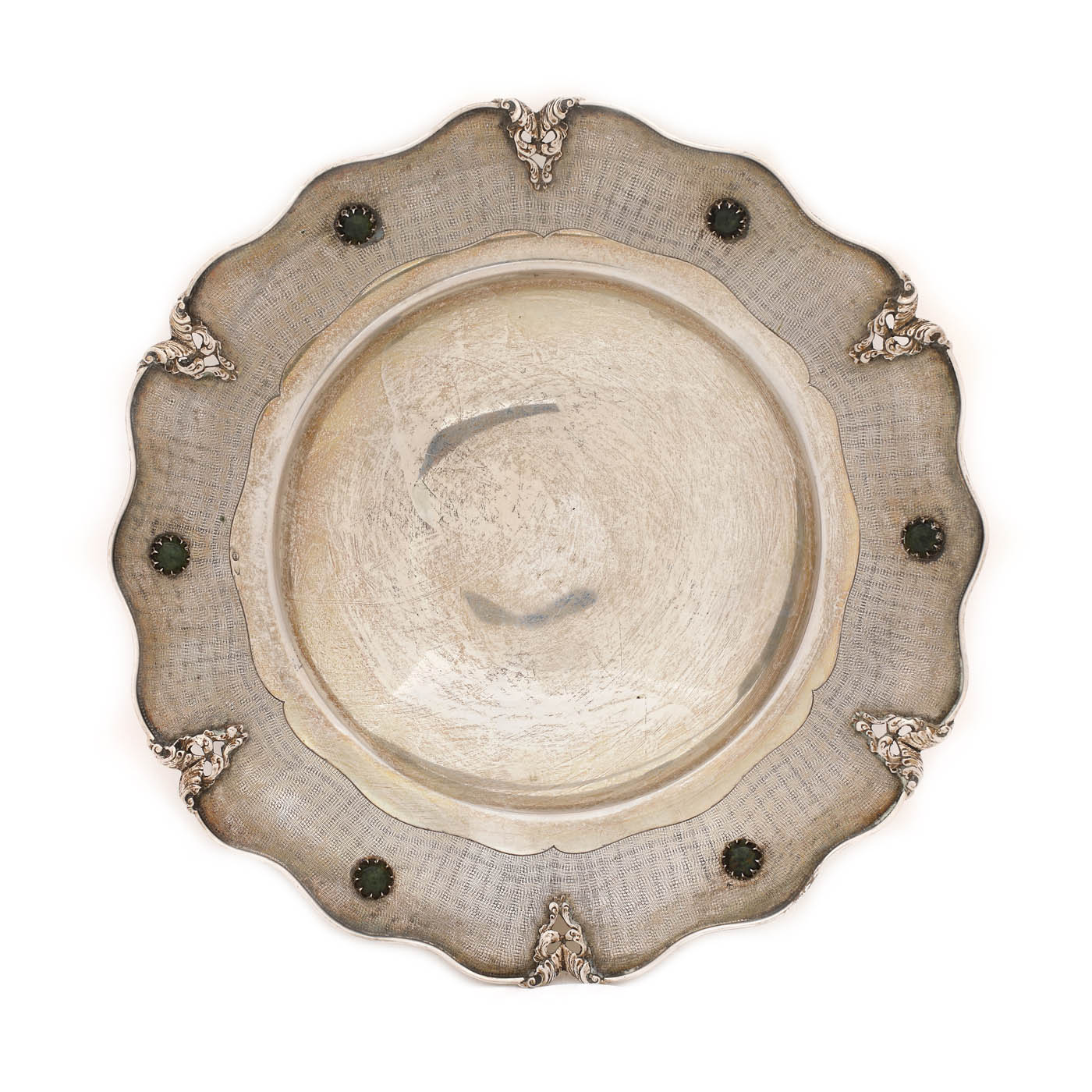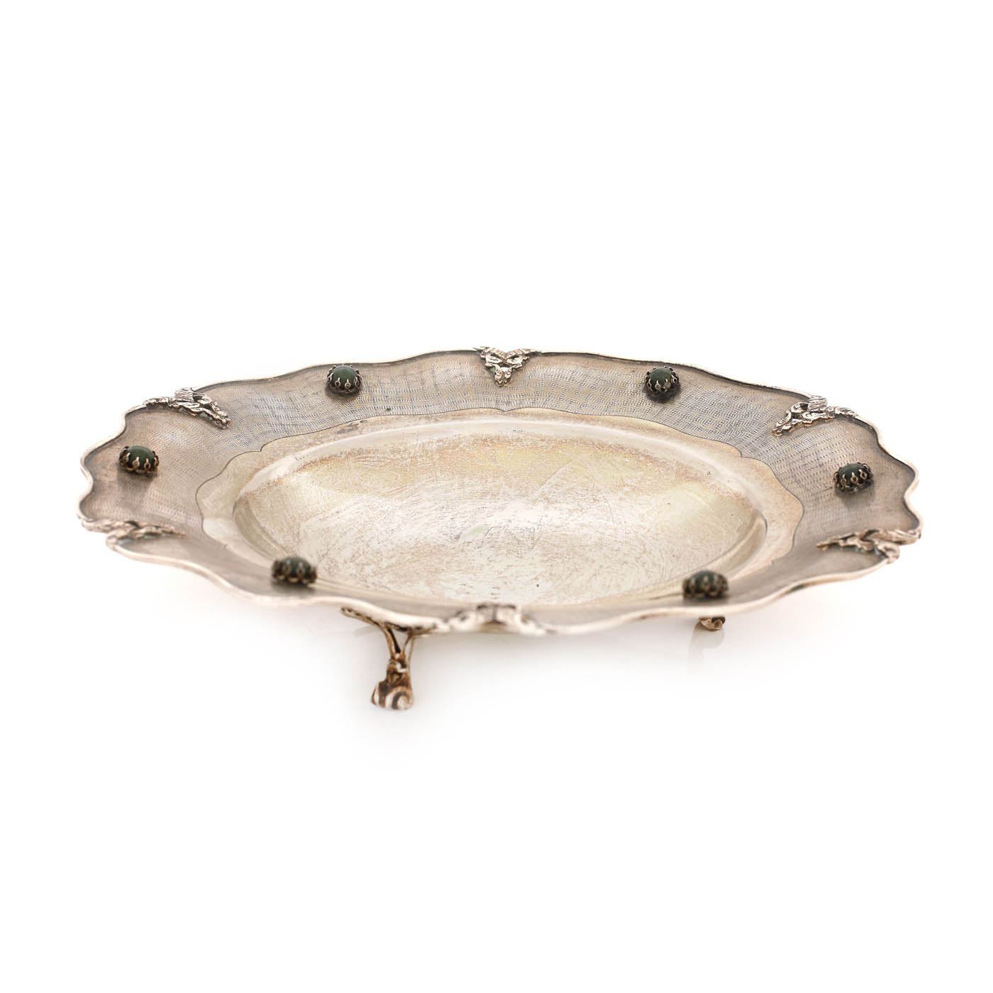 71. Platou din argint, ornat cu caboșoane verzi [Sec. XX]