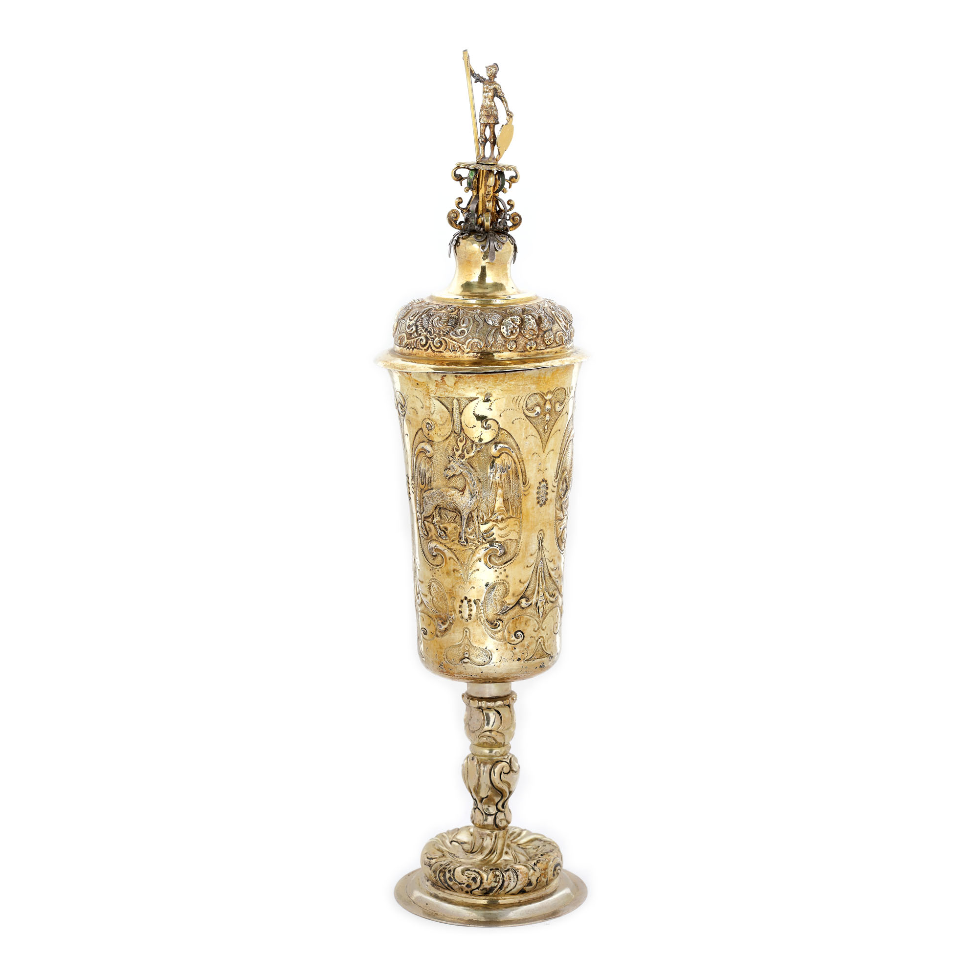 73C. Pocal transilvănean, din argint aurit, realizat de Paulus Roth, cca. 1680, cu picior și capac, piesă muzeală, de colecție